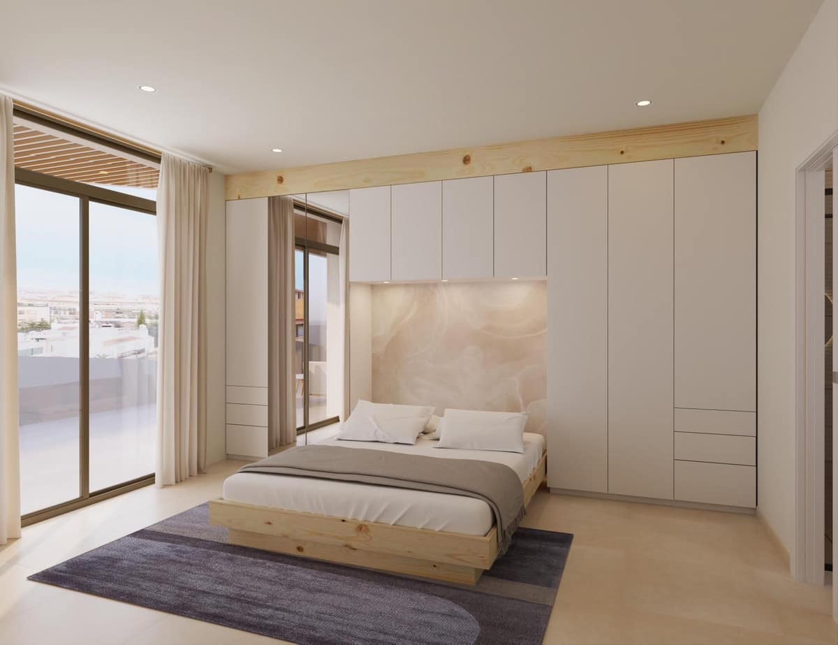 Vivienda 25 impresses with its exclusive rooftop solarium featuring a private plunge pool, offering the ideal space to relax, entertain, and take in panoramic views of Estepona’s skyline. With a total of 61 m² of outdoor space — comprising a 33 m² main terrace and a 28 m² rooftop solarium — this residence epitomizes the Costa del Sol’s indoor–outdoor lifestyle.