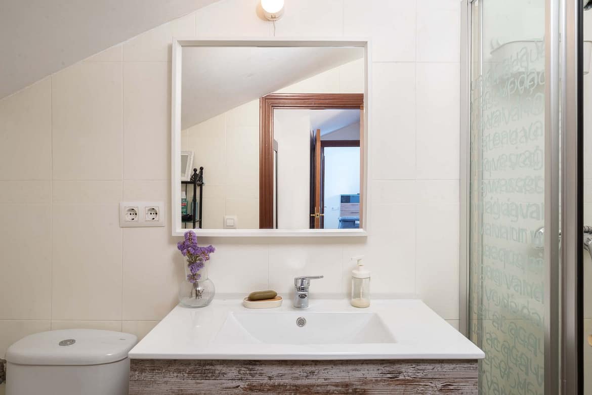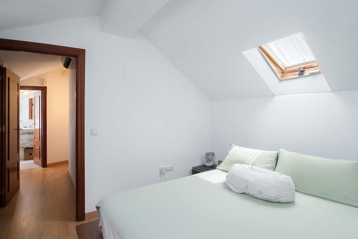 The upper floor has two bedrooms, a second full bathroom, a practical dressing room and a built-in wardrobe along the entire length of the hallway, perfect for keeping things tidy and providing ample storage space.