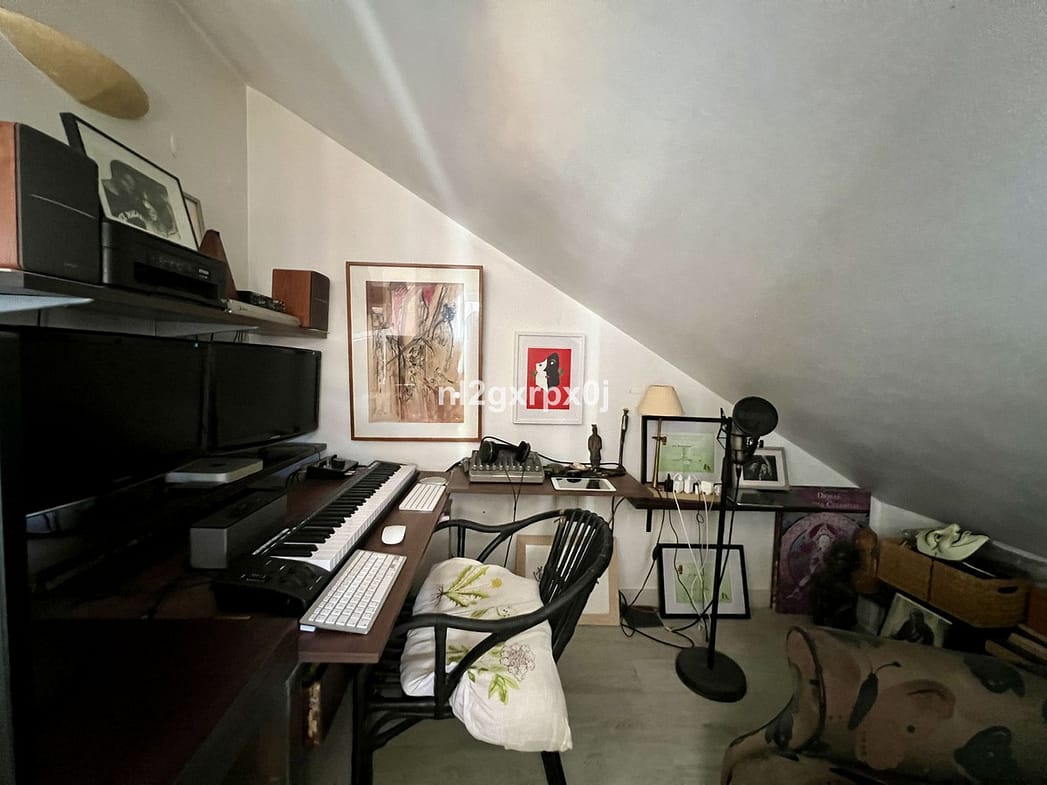 This spacious and bright duplex penthouse features a large living room with a wood-burning fireplace, a fully equipped kitchen, and a small office. It offers many possibilities, with the possibility of converting into an additional bedroom or another en-suite bathroom.