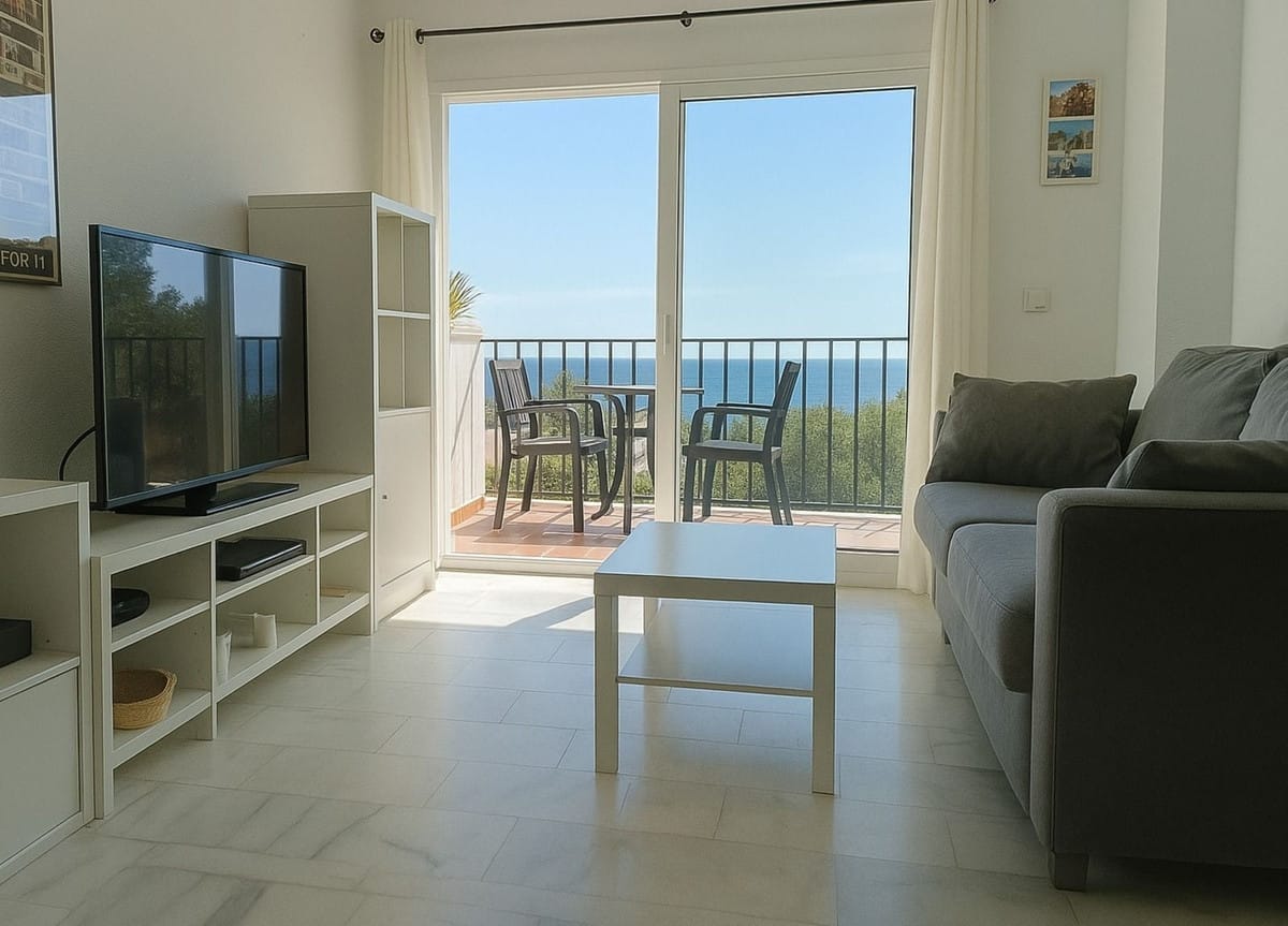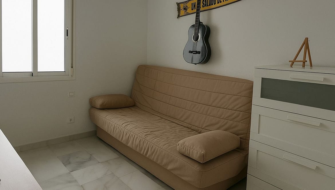 This penthouse offers a bright and relaxed living experience on the third floor with elevator access, standing out for its fresh, summery atmosphere. Its location, just a few minutes’ walk from Bombo Beach and close to all the village’s amenities, allows you to enjoy the coast without needing a car. From the living room and the main bedroom, you can enjoy open sea views—a privilege that also extends to the two private terraces: one with direct access from the living room, and another located on the rooftop, right above the apartment.