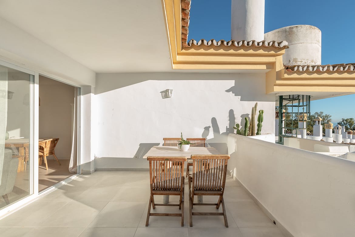 Stunning and exclusive 2 bed penthouse located in Calahonda with beautiful sea views. This bright property has been fully renovated to a lovely mediterranean style and offers all the facilities, such as an ample private rooftop with amazing sea and mountain views and a nice bath were you could enjoy the best sunsets! The penthouse has two bedrooms, one bathroom, a nice open plan kitchen and a bright living room that leads into a terrace.