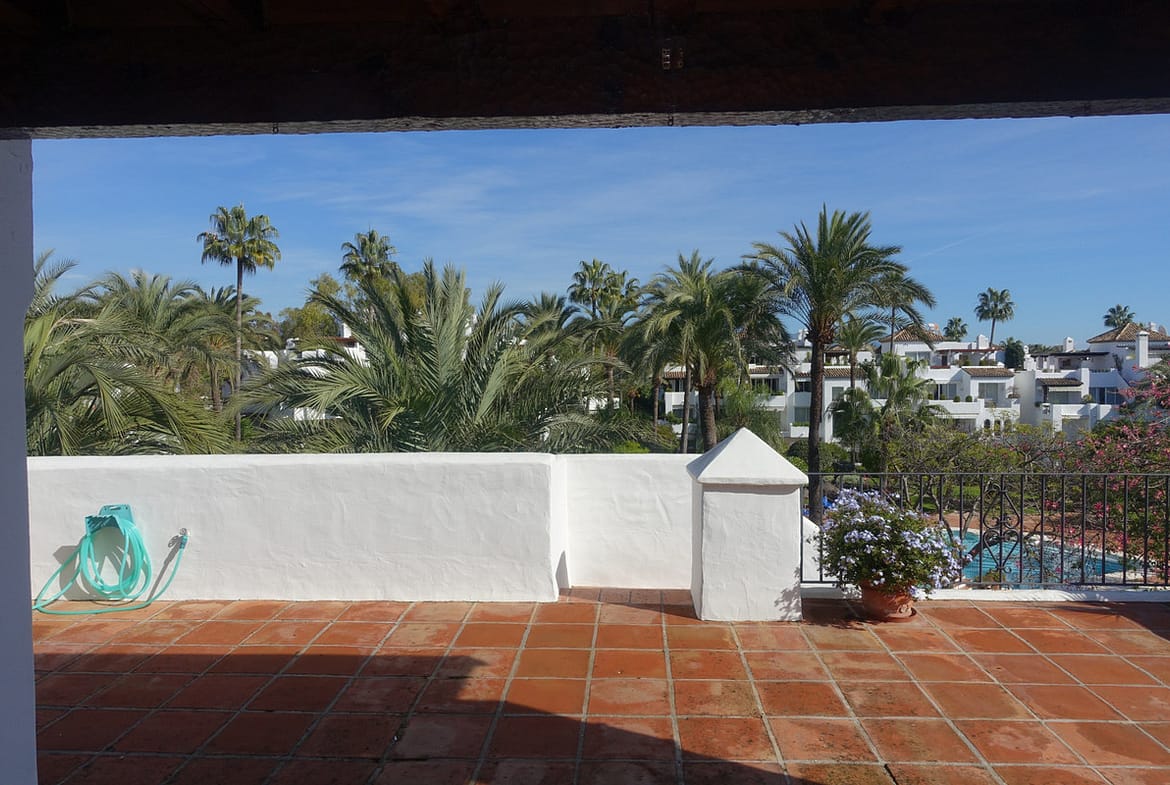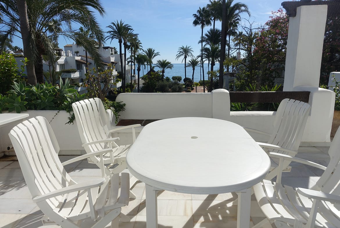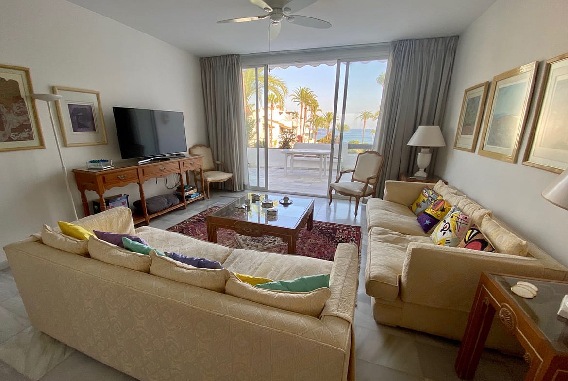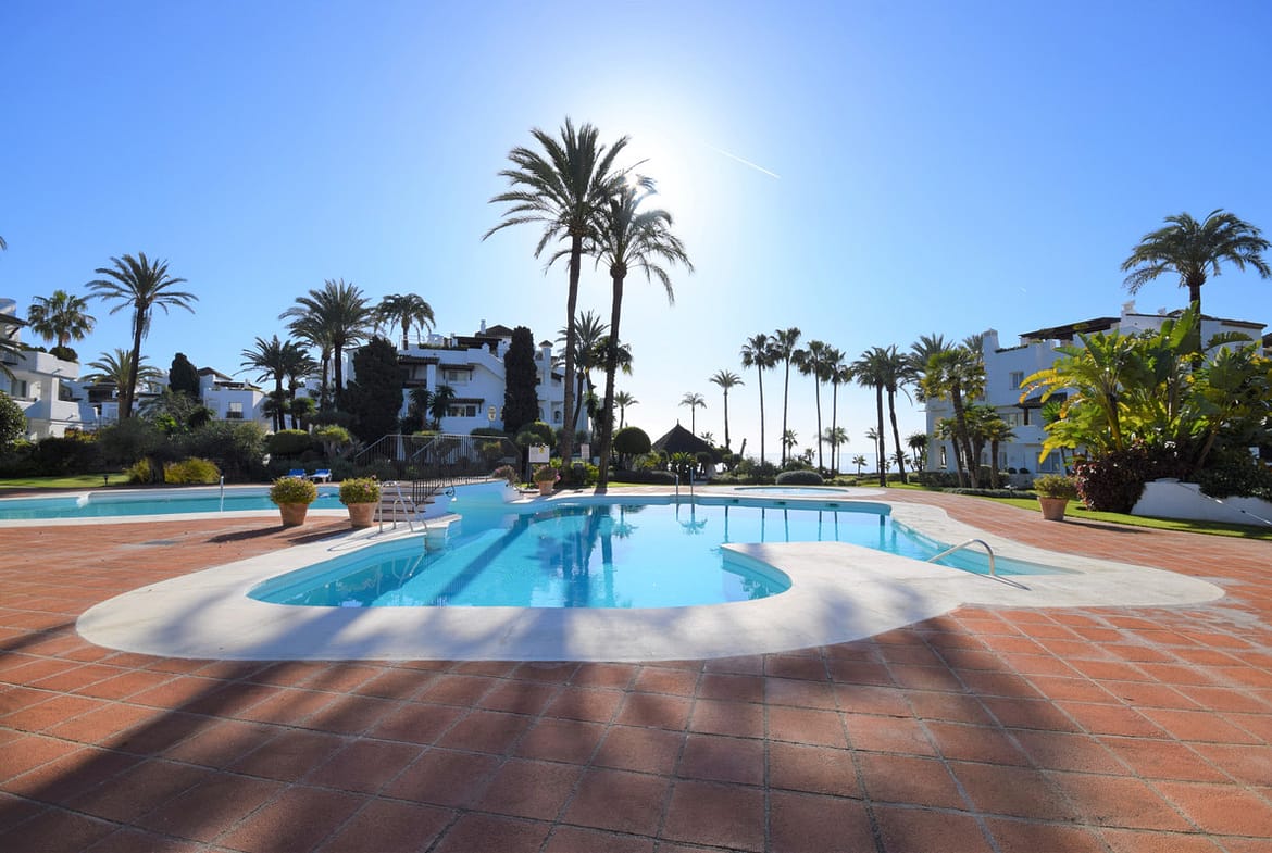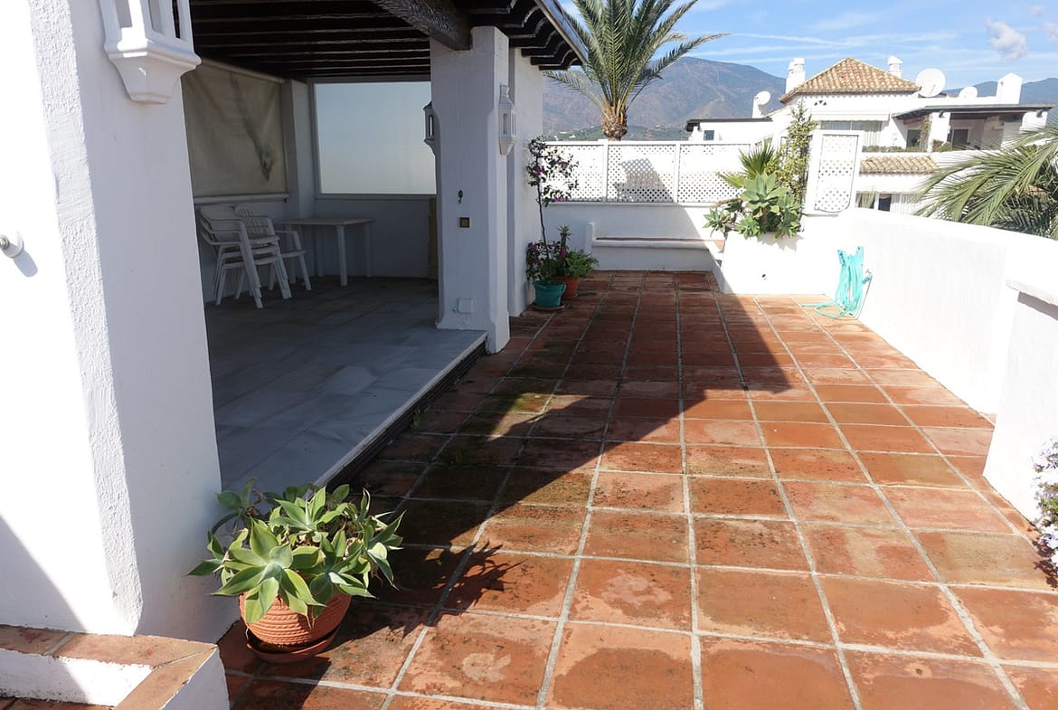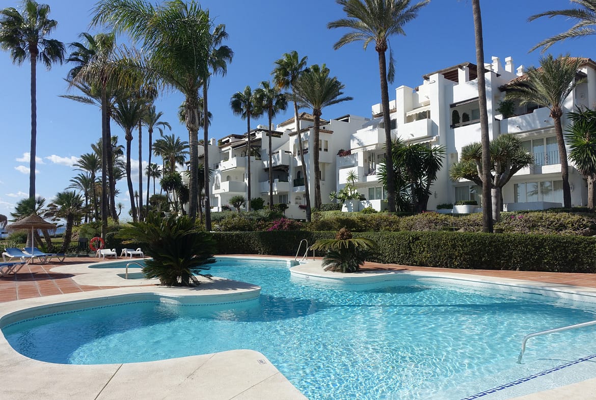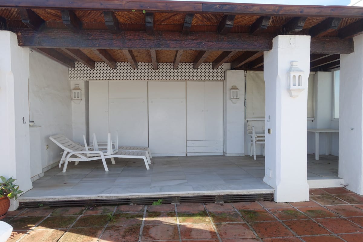 This front line beach complex is located in the New Golden Mile, whithin walking distance to all amenities proving great installations such as: 7 pools, paddle, tennis and basketball courts, gym, a football field and a beach restaurant. It has a beautiful beach as well as landscaped tropical gardens. The penthouse comprises of 2 bedrooms, 2 bathrooms, kitchen with utility room, good sized living / dining area with access to a west facing terrace offering nice sea, pool and garden views. The huge roof terrace of 100 sqm area is perfect for relaxing and enjoying the nice sunny days. Special features: air conditioning, marble flooring, 24 h security, gated complex.