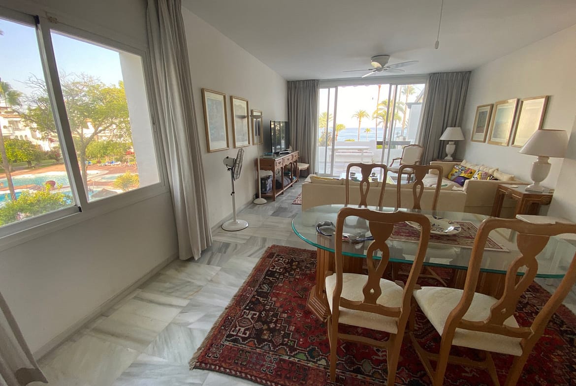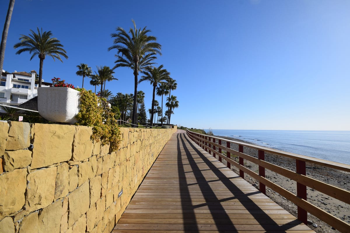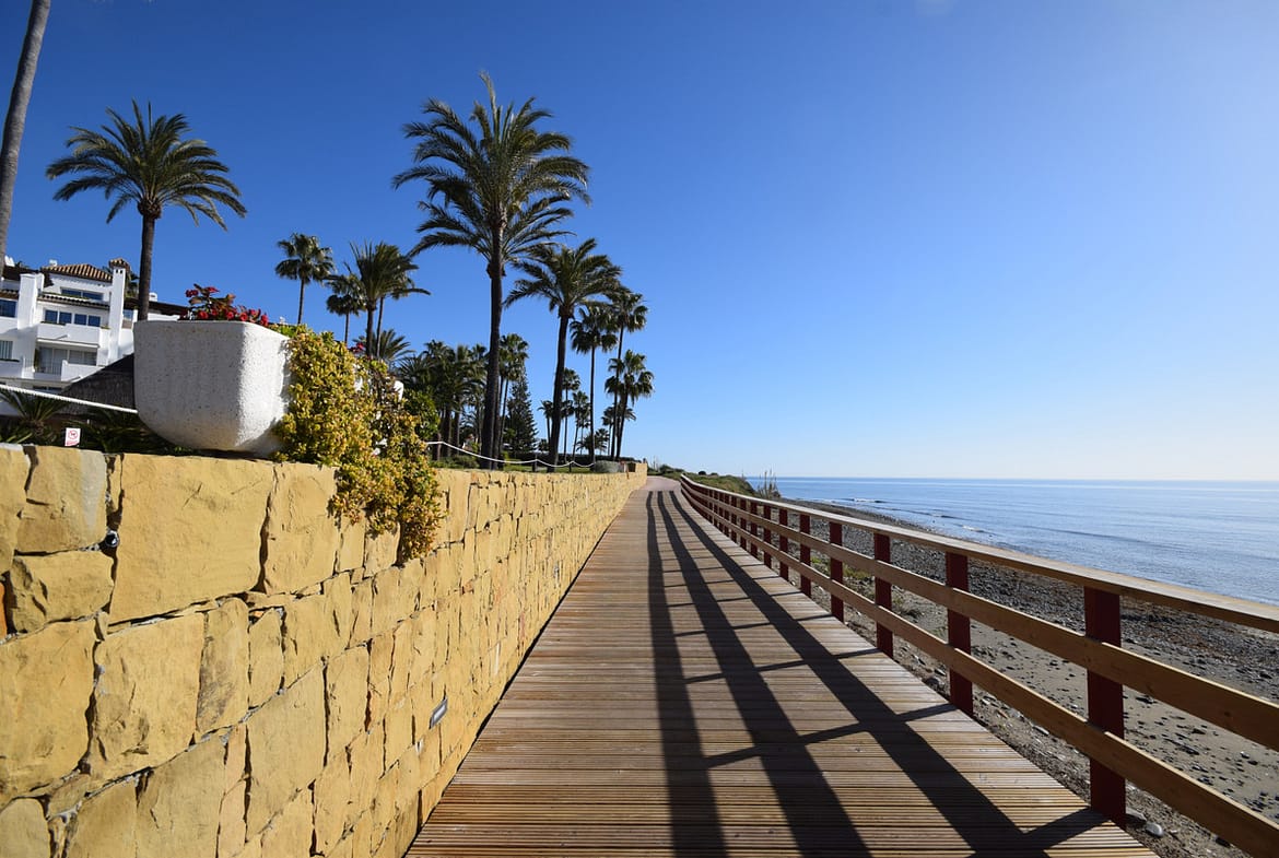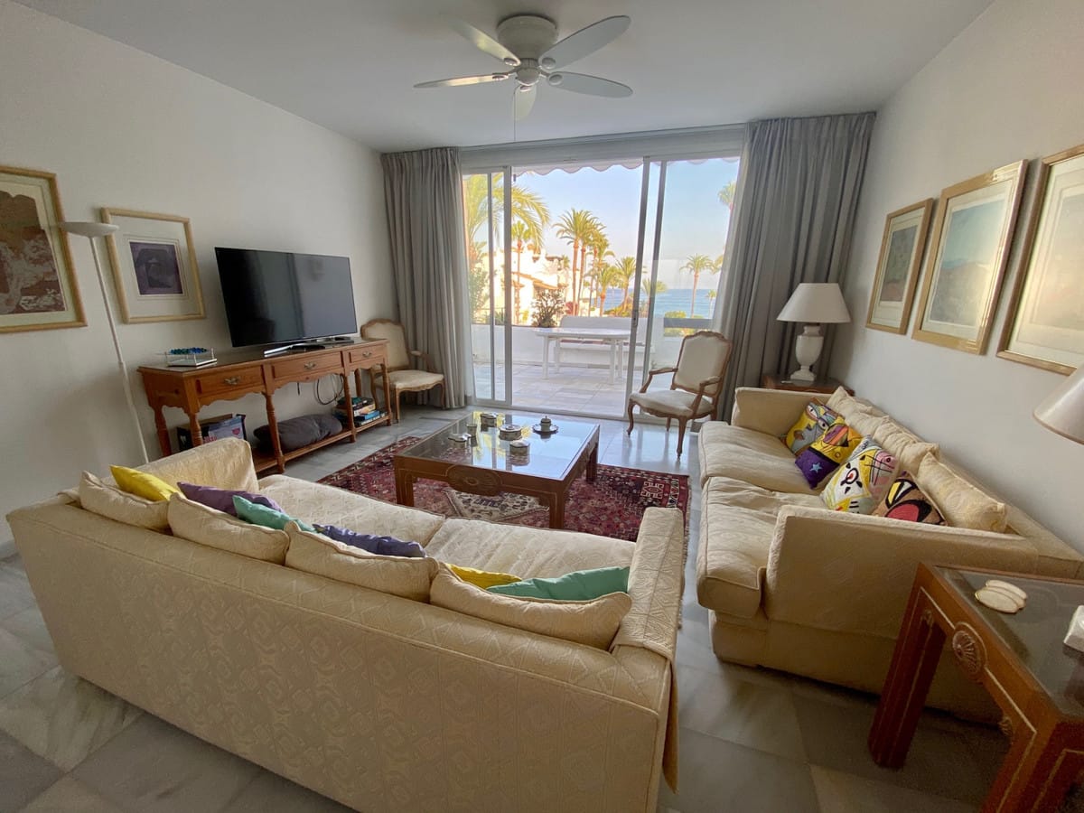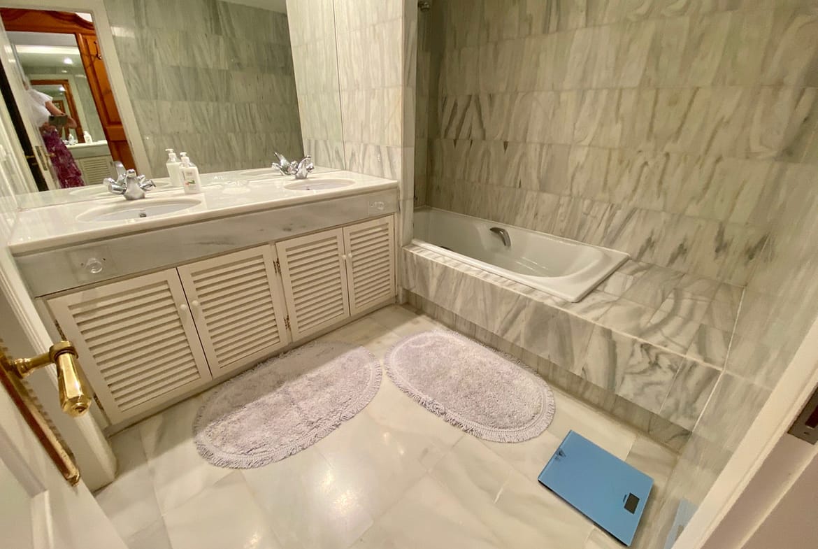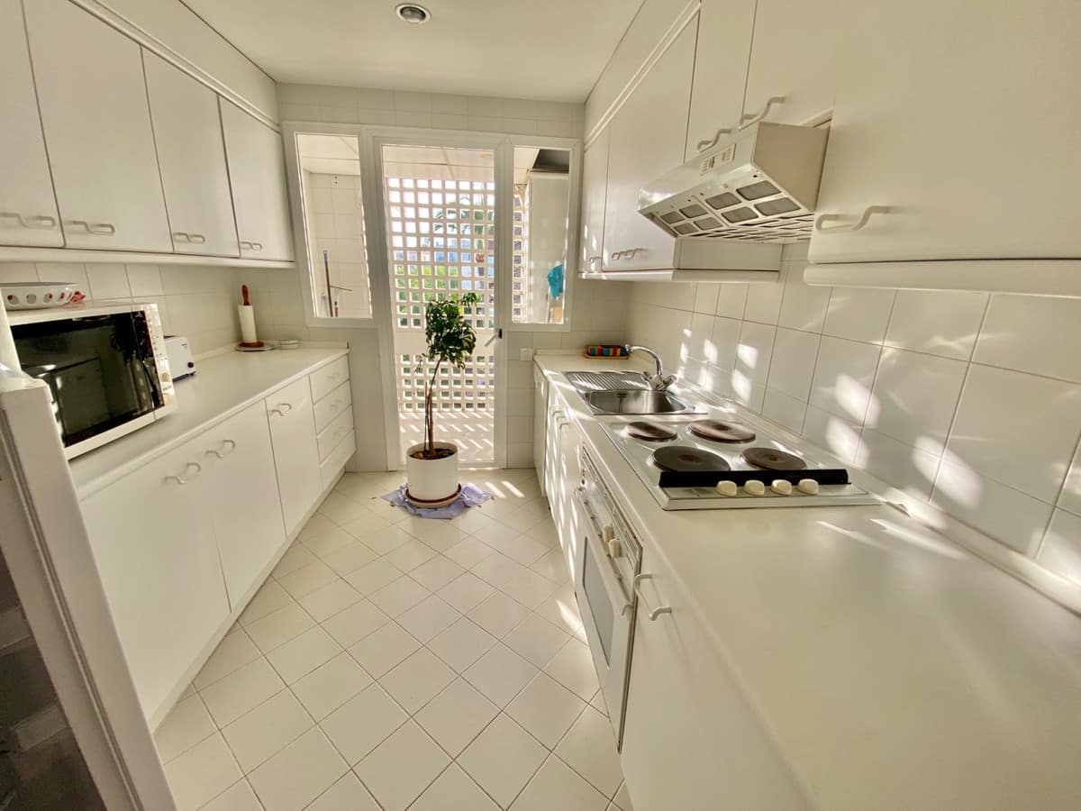 This front line beach complex is located in the New Golden Mile, whithin walking distance to all amenities proving great installations such as: 7 pools, paddle, tennis and basketball courts, gym, a football field and a beach restaurant. It has a beautiful beach as well as landscaped tropical gardens. The penthouse comprises of 2 bedrooms, 2 bathrooms, kitchen with utility room, good sized living / dining area with access to a west facing terrace offering nice sea, pool and garden views. The huge roof terrace of 100 sqm area is perfect for relaxing and enjoying the nice sunny days. Special features: air conditioning, marble flooring, 24 h security, gated complex.
