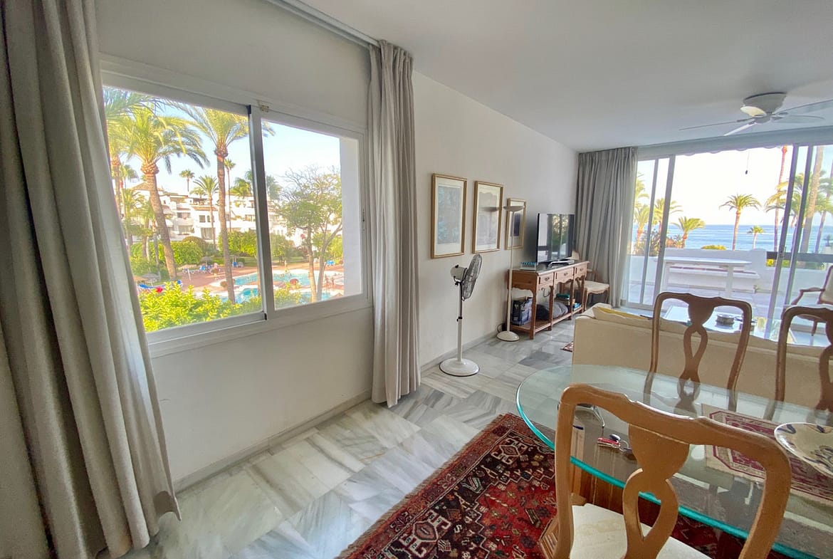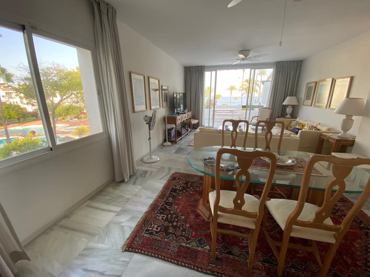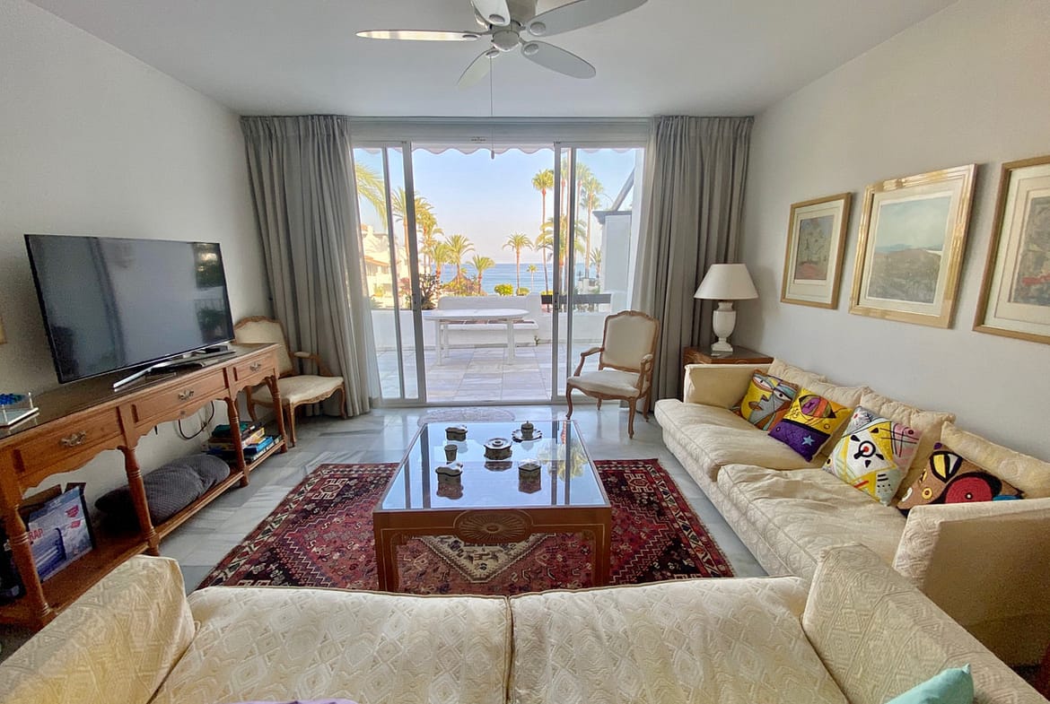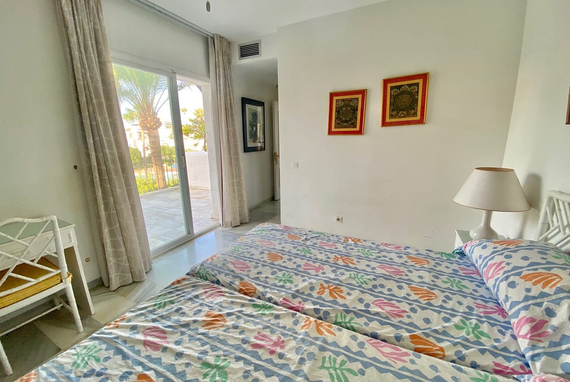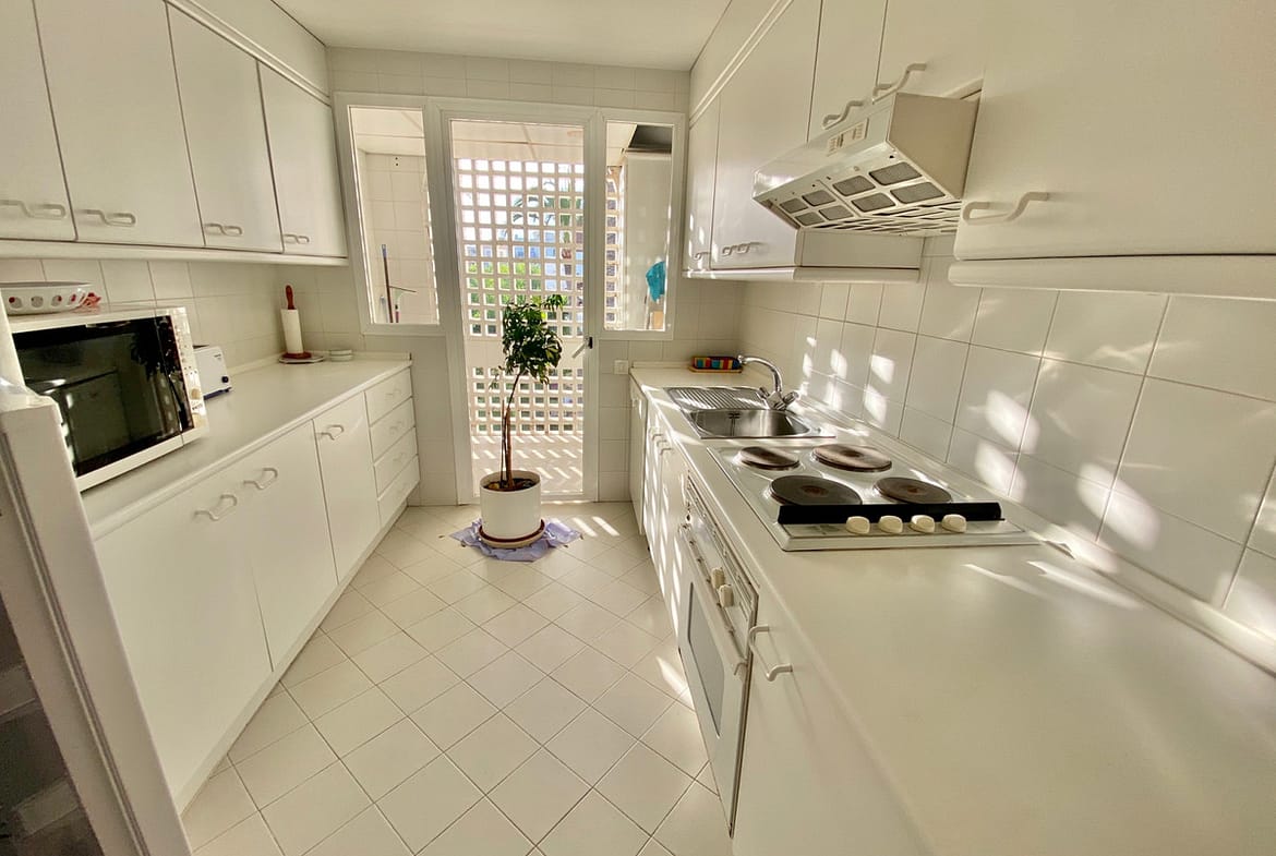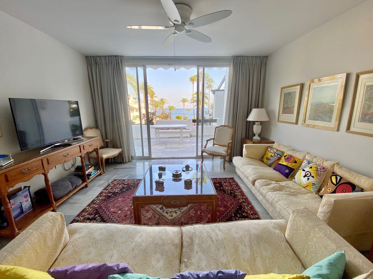 This front line beach complex is located in the New Golden Mile, whithin walking distance to all amenities proving great installations such as: 7 pools, paddle, tennis and basketball courts, gym, a football field and a beach restaurant. It has a beautiful beach as well as landscaped tropical gardens. The penthouse comprises of 2 bedrooms, 2 bathrooms, kitchen with utility room, good sized living / dining area with access to a west facing terrace offering nice sea, pool and garden views. The huge roof terrace of 100 sqm area is perfect for relaxing and enjoying the nice sunny days. Special features: air conditioning, marble flooring, 24 h security, gated complex.