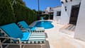 The apartment spans 80m² of well-designed living space, complemented by a generous 10m² private terrace. The layout features 2 en-suite bedrooms, each equipped with spacious built-in wardrobes and modern private bathrooms, ensuring privacy and ample storage. The living-dining area is open-plan, seamlessly integrating a fully fitted and equipped kitchen with all necessary appliances and utensils. This space is further enhanced by large, fully retractable sliding doors that extend the living area onto the covered terrace, offering a perfect setting for relaxation or entertaining guests. Additional features include double glazing, electric blinds, central air conditioning with individual zone control, and satellite TV, all contributing to a comfortable and modern lifestyle.