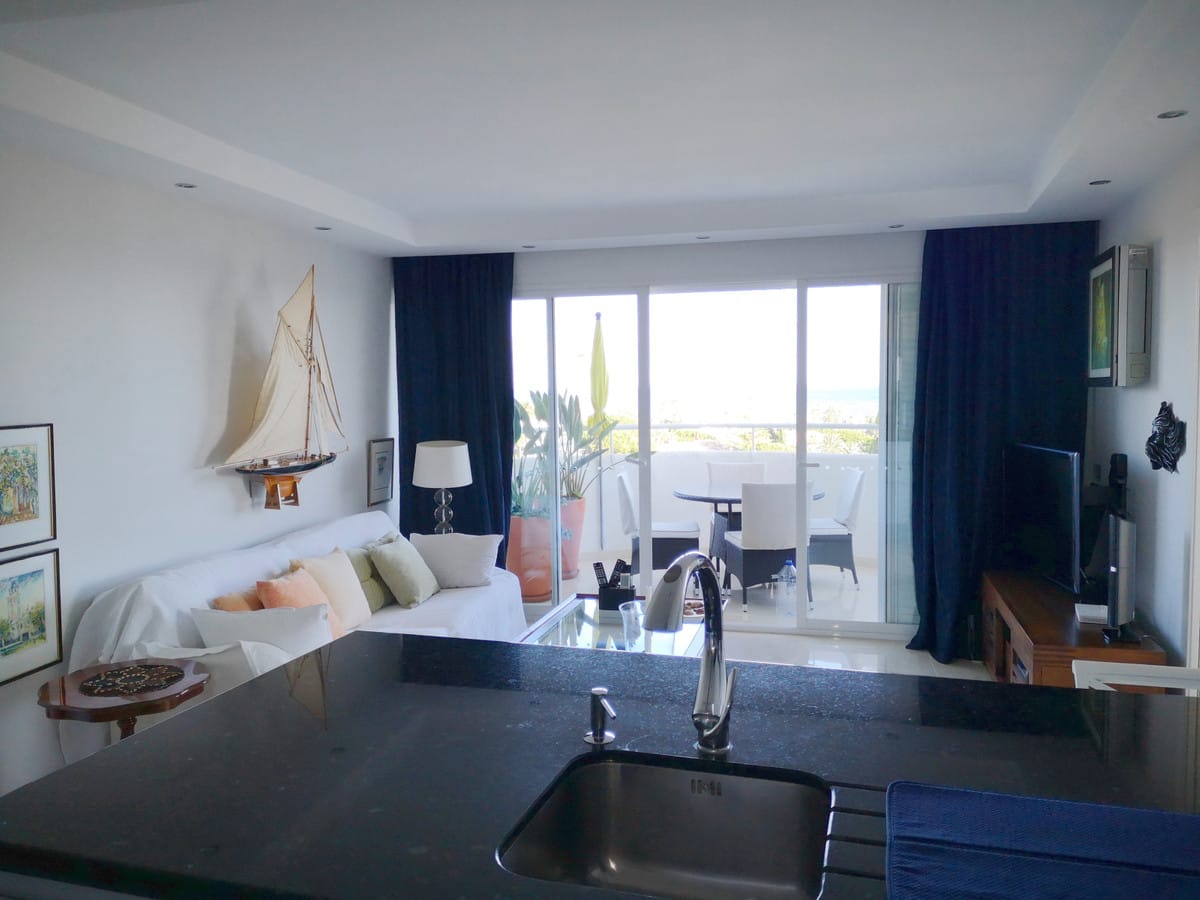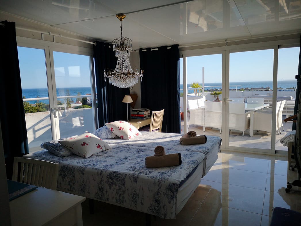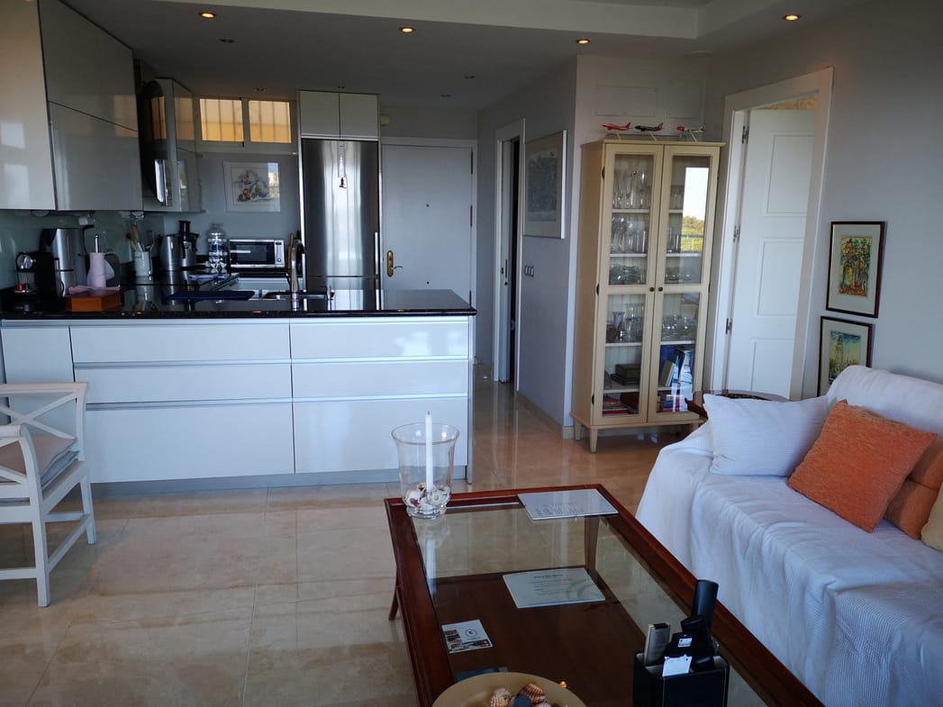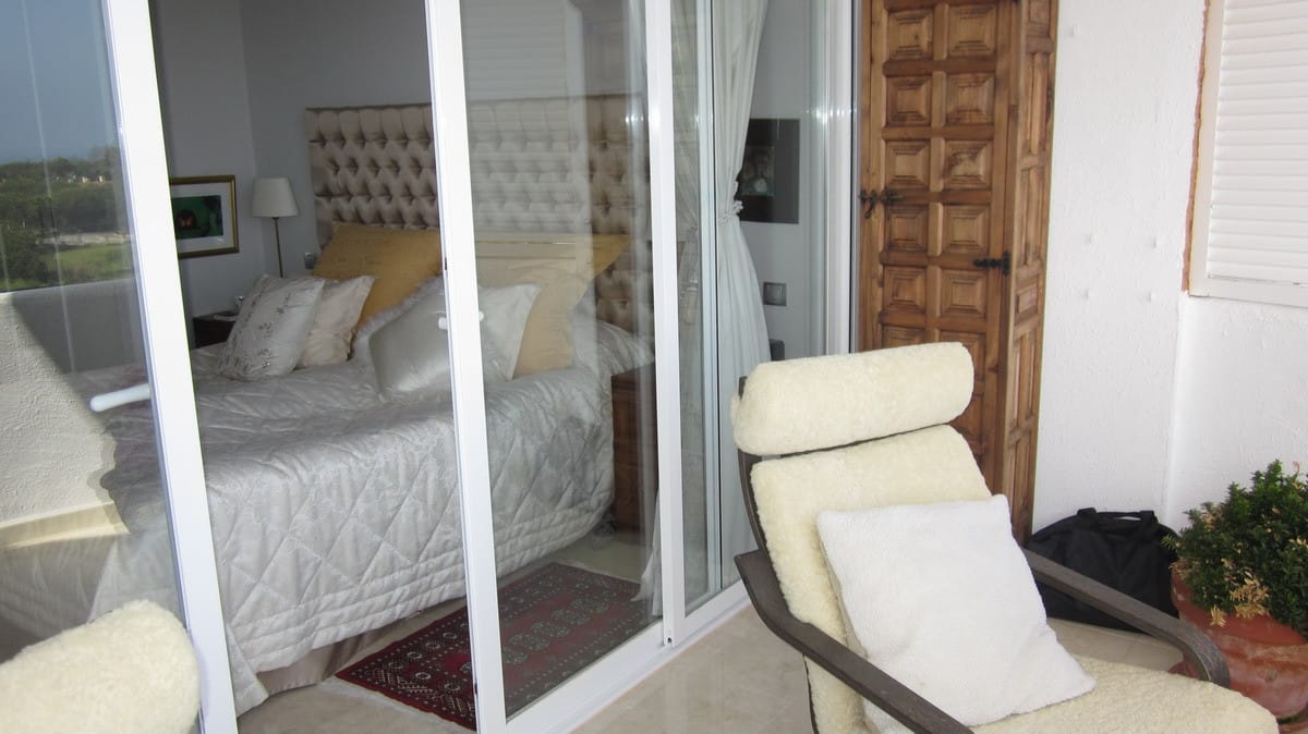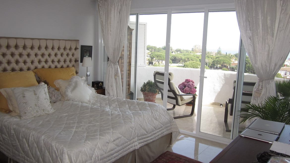 2 Bedroom apartment for holiday rental in Marbesa: This is a wonderful 2 bedroom penthouse with the most amazing huge terrace where you can laze around on a balinesian style chill out bed, looking out to the sparkling Mediterranean. Every detail has been thought of in this perfect holiday home. There are 2 bathrooms, both with large showers, and both bedrooms have twin beds which can be pushed together. The state of the art kitchen is completely equipped with hob, oven, microwave, toaster, coffeemaker, Nespresso machine, juicer, dishwasher, fridge freezer and all appliances are either Bosch or Miele. The glassware and crockery is of the best quality and no detail has been missed. The highlight of this penthouse is the terrace where you will find a dining table and chairs, sofas and armchairs as well as a large double chill out bed, parasols and a proper overhead shower when you need to cool off. This apartment is suitable for over 18s only.