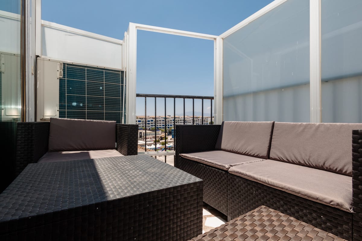 This impressive penthouse of 191 m², bathed in natural light, offers privileged sea views and an ideal layout for an unforgettable stay. Upon entering, you are welcomed by a spacious double-height living room, a relaxation area with a decorative fireplace and a smart TV, and a dining area with seating for six.