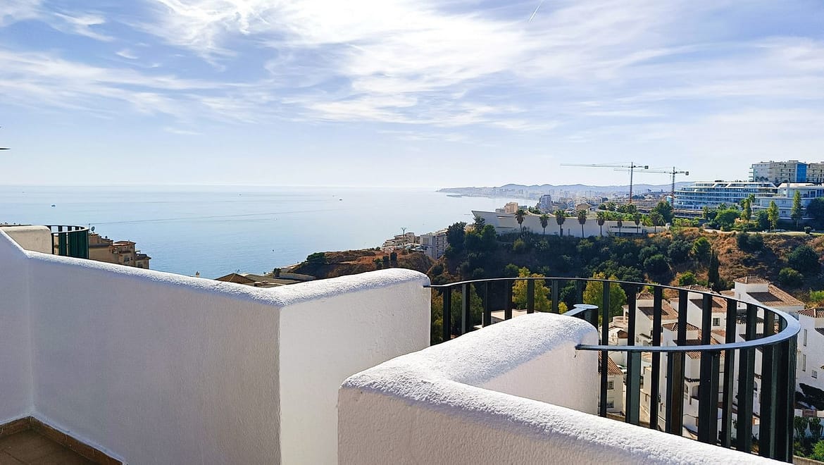 Spectacular penthouse just 800 meters from Carvajal Beach, featuring an upper terrace, two bedrooms, and a bathroom. Gated complex with a swimming pool, extensive communal gardens, and a tennis court. West facing.