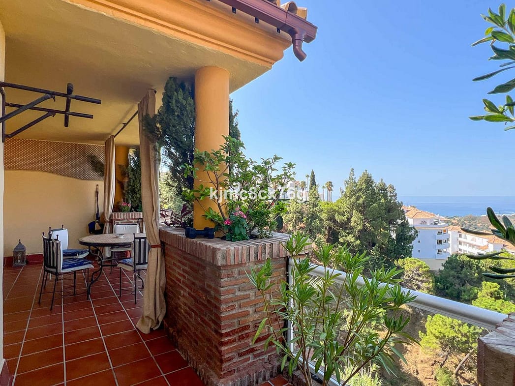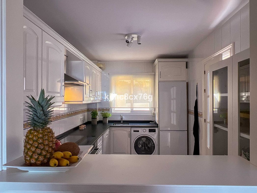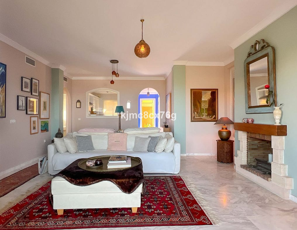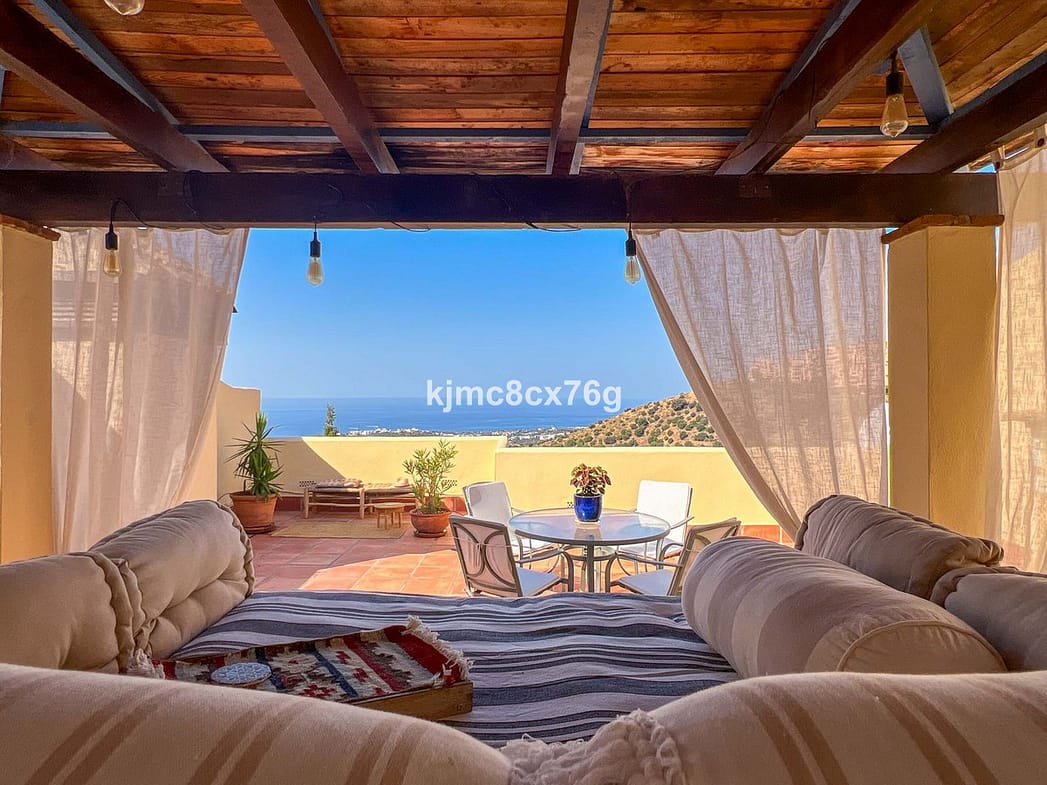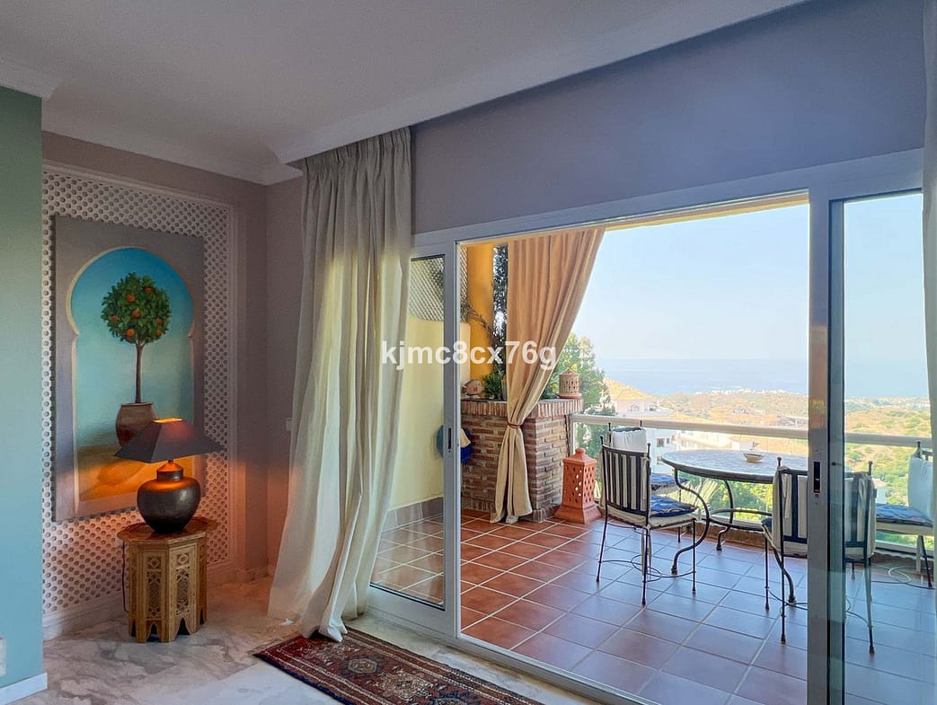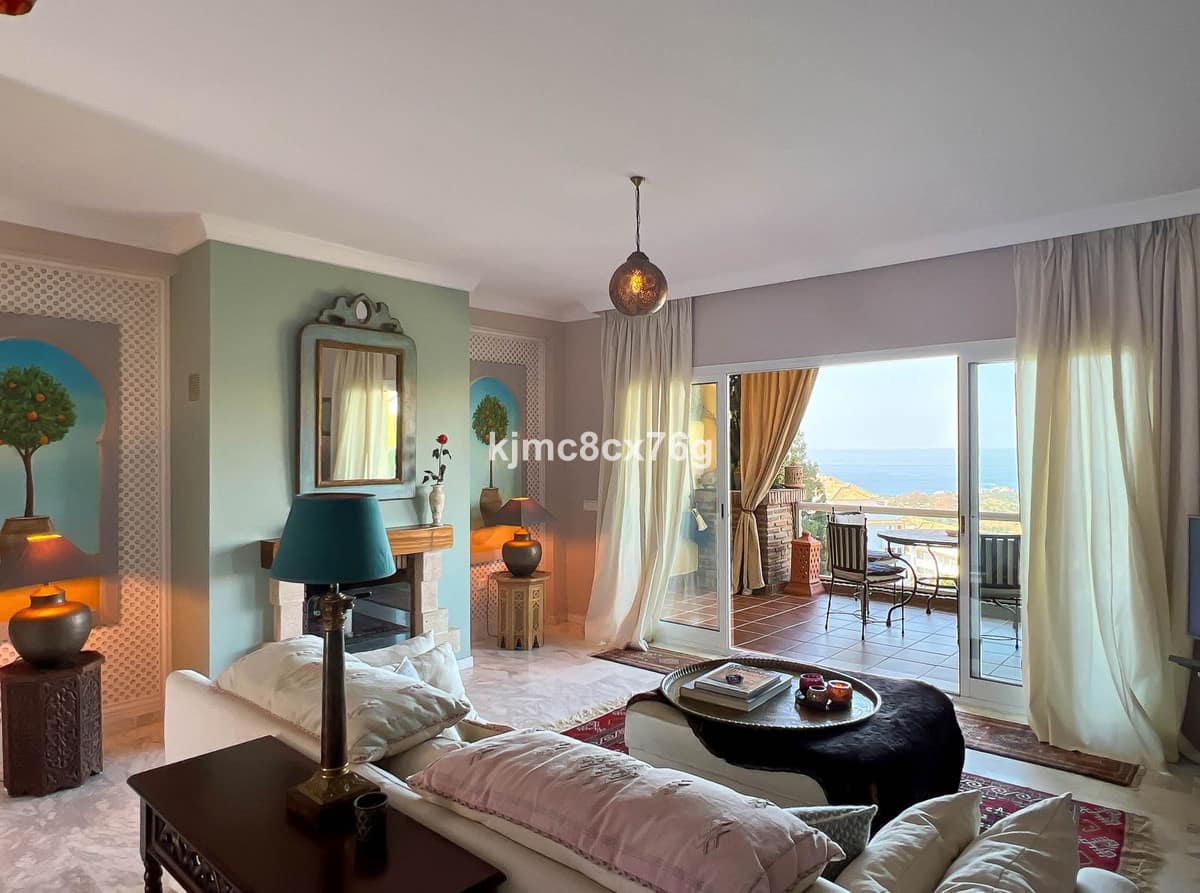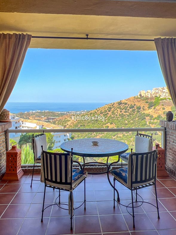 Discover this stunning 2-bedroom penthouse, fully renovated and located in a peaceful Andalusian-Mediterranean style complex in upper Calahonda (Mijas Costa). Facing west, it enjoys all-day natural sunlight and spectacular panoramic views of the sea and mountains from every room.