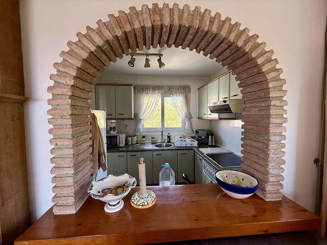 Inside, the apartment is in good condition and includes modern comforts such as air conditioning (hot and cold), a fireplace, marble flooring, and double glazing. The fully fitted kitchen flows into the living area, and fitted wardrobes provide excellent storage.