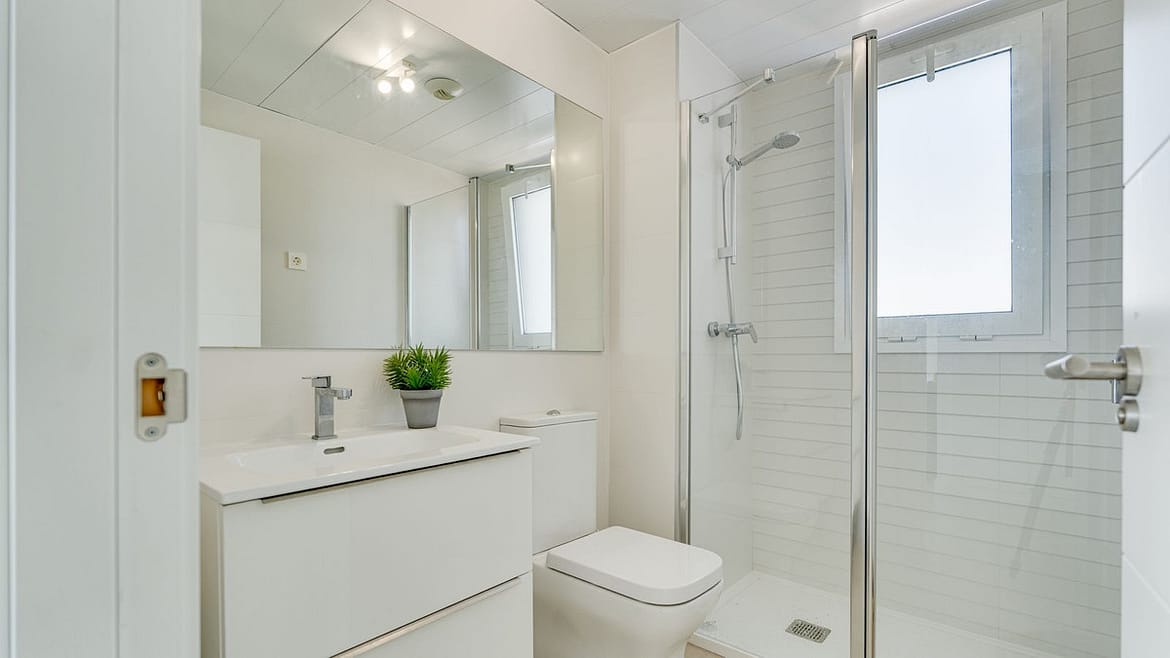 The penthouse is located in a modern residential complex with a communal pool and gym. Two well-proportioned bedrooms, one with en-suite bathroom, provide comfortable living.
