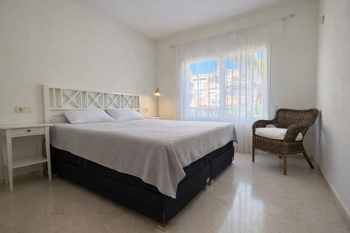 Beachside Duplex Penthouse on the New Golden Mile, a great opportunity to purchase a spacious beachside duplex penthouse in a prime location, just a few minutes walk from the beach promenade. The property offers spacious accommodation with bright open plan living, two large bedrooms (including a master bedroom with en-suite bathroom), and outdoor space with terraces enjoying sea views. The fully fitted kitchen has been recently renovated and there is an adjacent laundry room. The upper level features a large private rooftop terrace, offering privacy, sea views, and plenty of space for outdoor dining and entertaining. The penthouse is sold with an underground parking space and a private storage room. The gated urbanisation has mature landscaped gardens and well maintained communal areas, creating a perfect beachside environment.