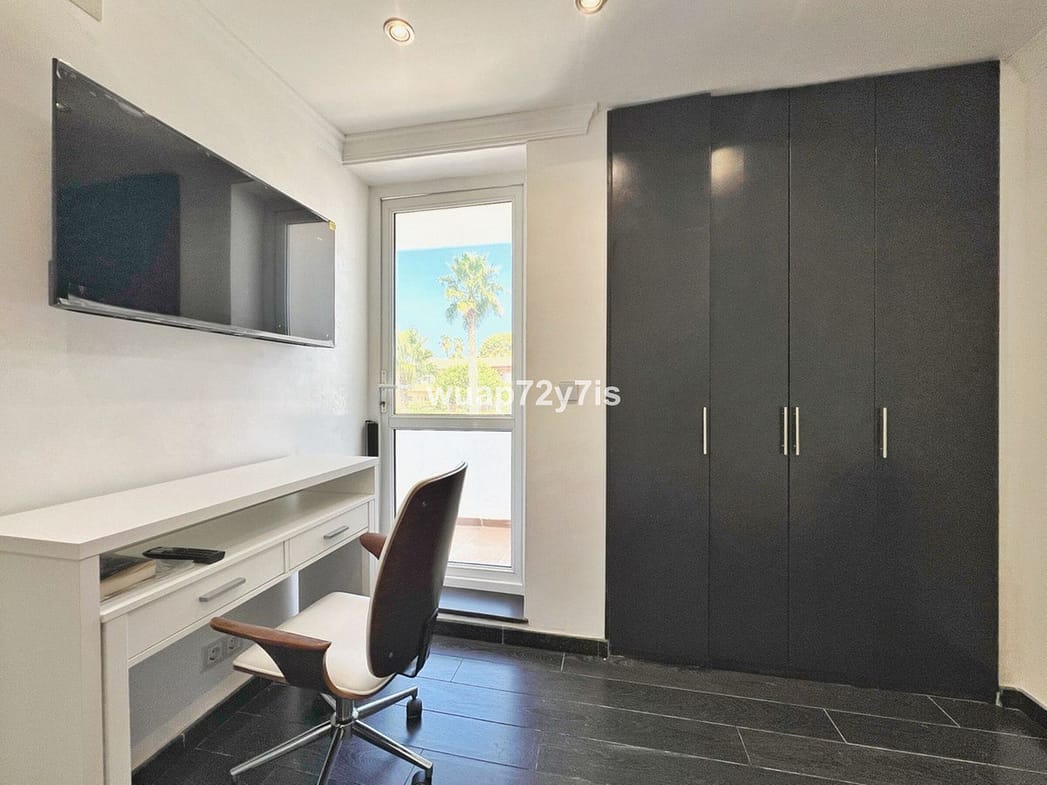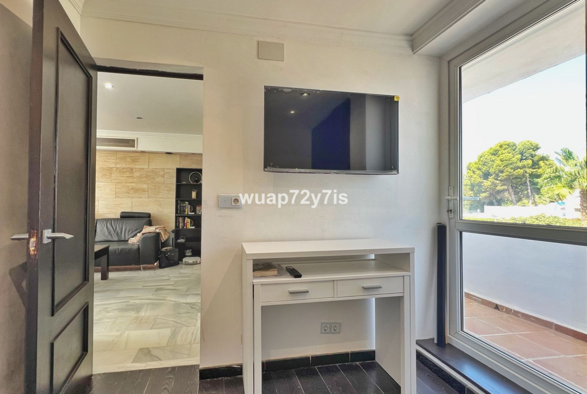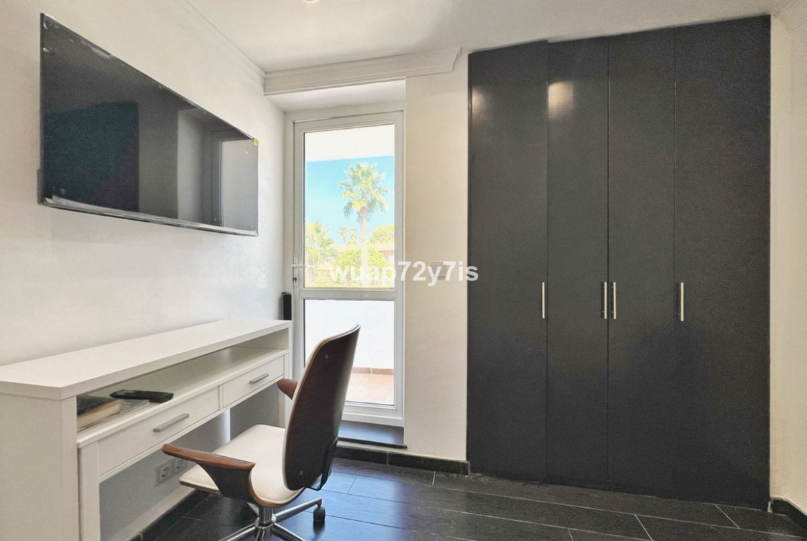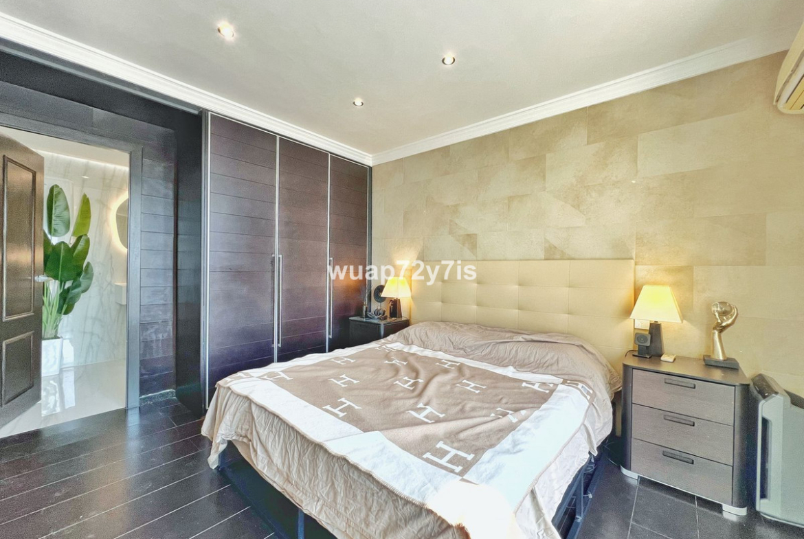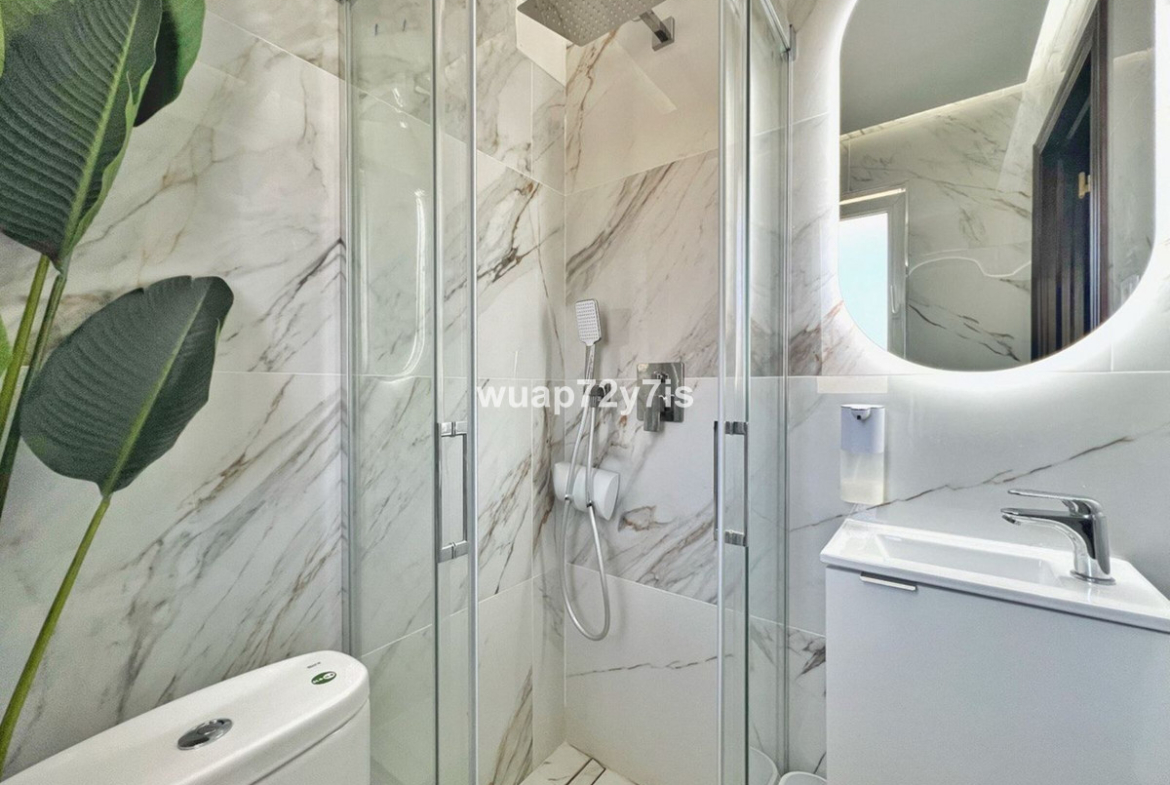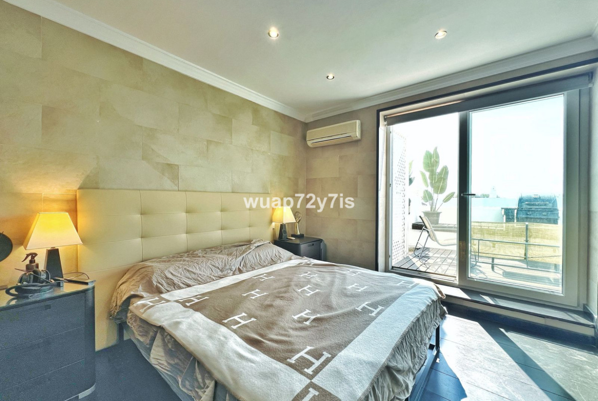 This beautifully renovated penthouse is located in the sought-after Sun Gardens urbanization in Estepona East. The community offers a swimming pool and permits short-term rentals, making it an excellent investment as well as a wonderful home. Upon entering, you are welcomed by an entrance hall with access to a guest toilet. To the right, there is a bright open-plan living room with a fully equipped kitchen. From the living area, you step out onto a spacious terrace with a barbecue area — perfect for dining and entertaining. From this terrace, a staircase leads you up to the private rooftop terrace, where you can relax in the jacuzzi, enjoy the additional barbecue space, and take in breathtaking panoramic views of La Concha mountain and the Mediterranean Sea.