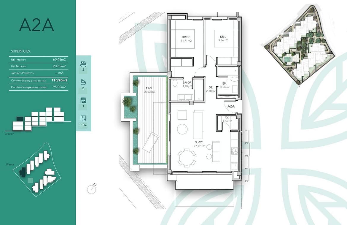 Constructed area of 110.90 m2 and a large terrace of 20.635 m2.