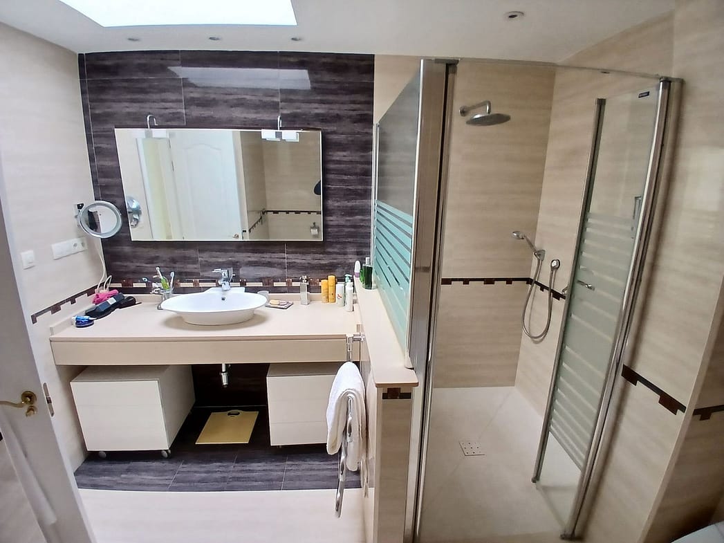 Located on the 12th floor, this penthouse is accessed via the Paseo Marítimo or the quieter rear street. Two elevators take you up to the 11th floor, where a broad staircase (with a chairlift for convenience) leads to your private sanctuary above it all.