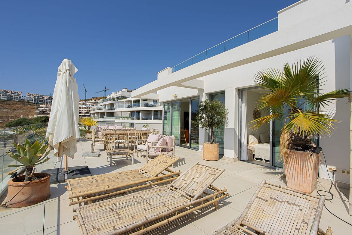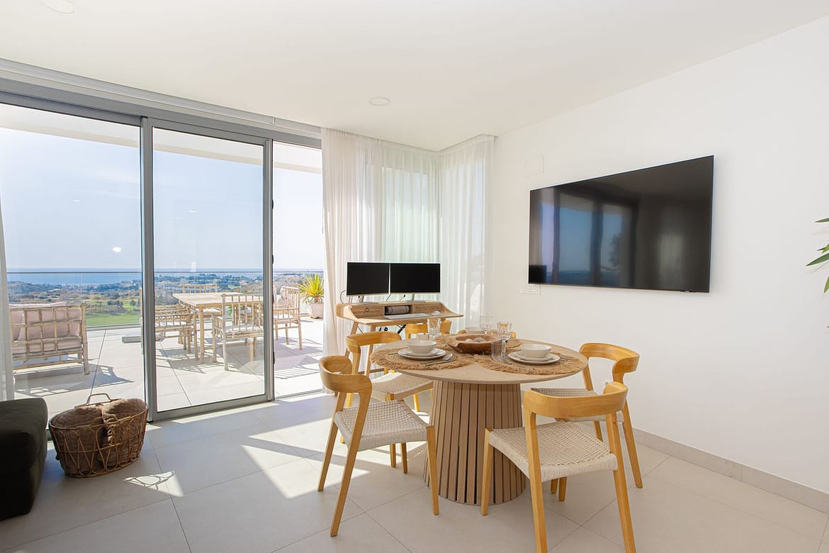 Perched above the green fairways of Calanova Golf Club, this exceptional penthouse offers 87 m² of refined interior living and an extraordinary 194 m² wraparound terrace, seamlessly extending your home into the sky. From sunrise to sunset, the southwest orientation ensures a stage of golden light and endless sea views.