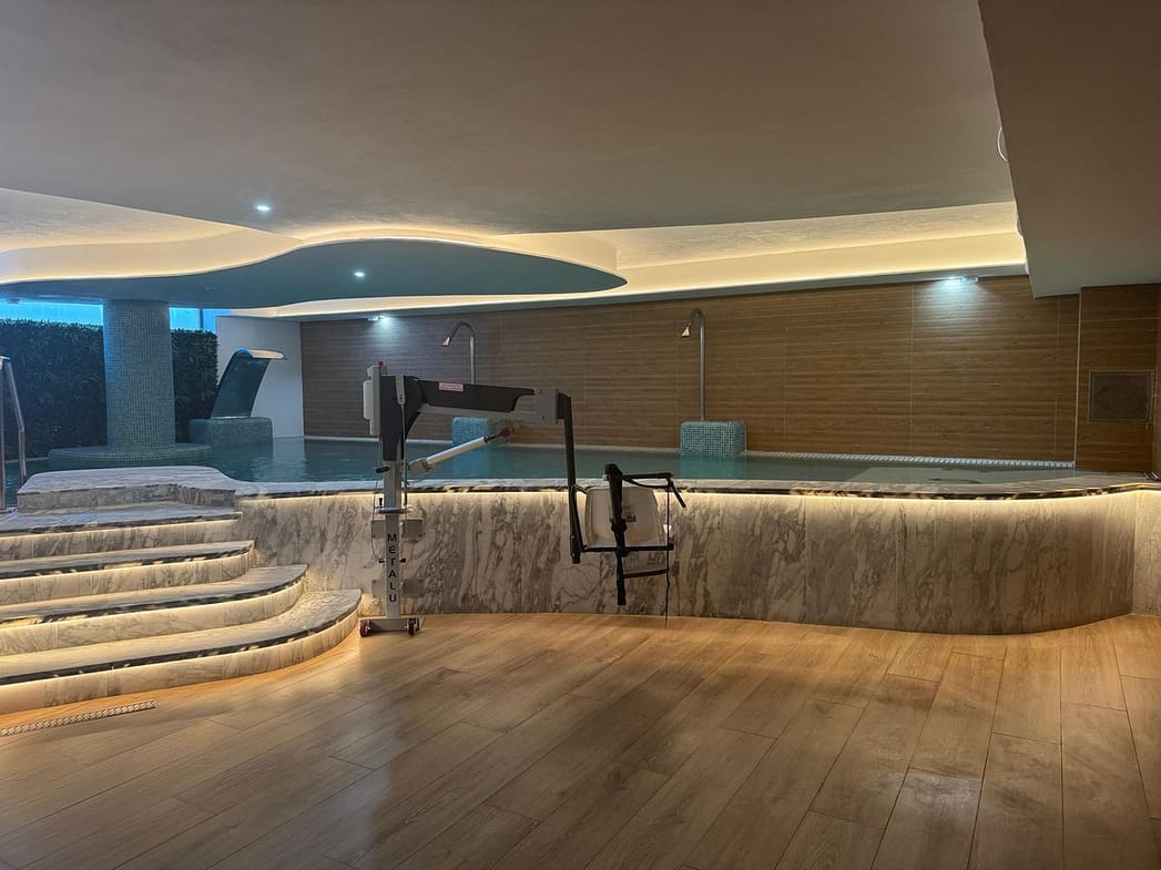 Underground garage ,Storage room,Sauna,Hammam turkish sauna,hot indoor pool, Fitness centre…….