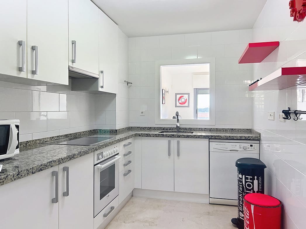 The apartment features a fully equipped kitchen, reversible air conditioning, and a beautiful terrace of approximately 20 m² with stunning views of the sea and the Rock of Gibraltar.