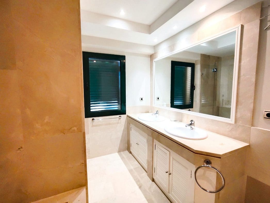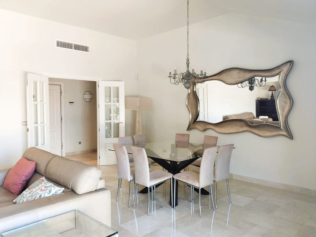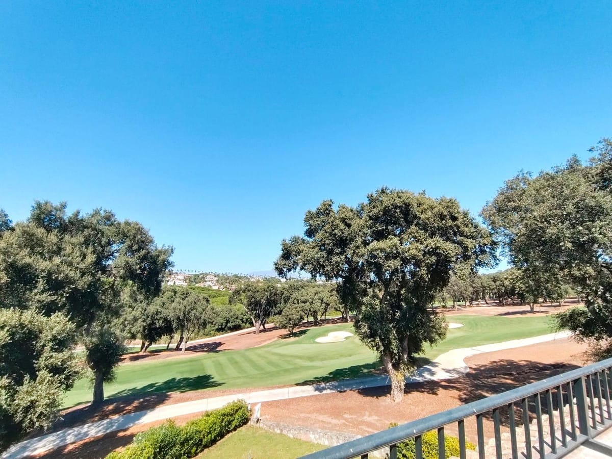 Experience the refined lifestyle at San Roque Club with this beautiful 2-bedroom, 2-bathroom penthouse, positioned frontline to the golf course. The expansive living and dining area features a cozy fireplace, a vaulted ceiling, and large sliding doors that open to a spacious terrace with panoramic views over the prestigious Old Course.
