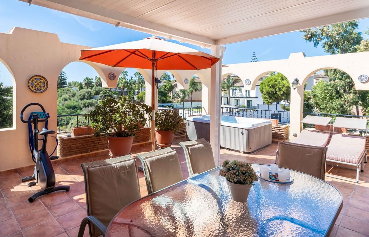 The terrace is undoubtedly the heart of the home: an ideal spot to enjoy the Costa del Sol lifestyle, featuring a beautiful jacuzzi where you can unwind while taking in the sea views. It’s the perfect place for sunbathing, dining with friends, or simply relaxing in total privacy.
