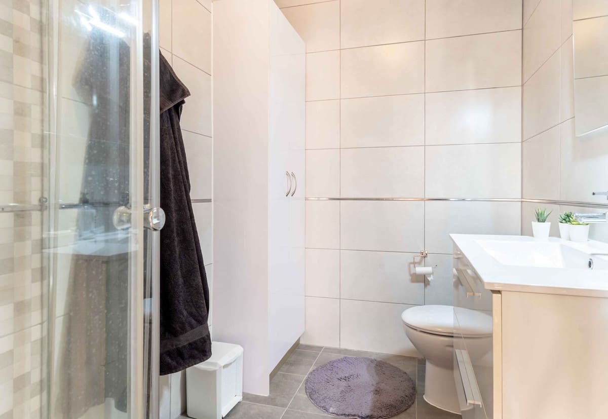 The apartment consists of two bedrooms, two bathrooms, a functional kitchen, and a bright living room that opens directly onto the terrace. It is perfectly habitable as is and offers great potential for personal customization.
