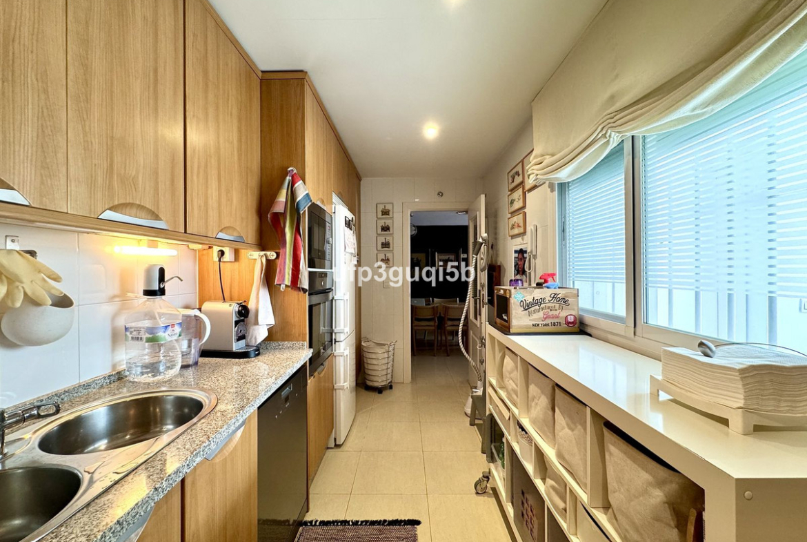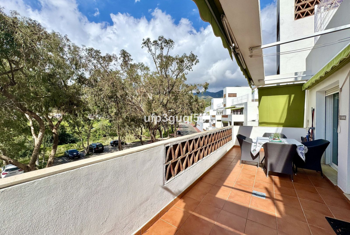 Beautiful penthouse with 2 west facing terraces in Torrequebrada. 2 bedrooms, 2 bathrooms, one of them ensuite. 2 very big private garage spaces and a spacious storage room are included in the price. Very well kept and quiet residential community, touristic rentals are not permitted. Communal garden and swimming pool. Walking distance to restaurants, cafés, supermarket, farmacy, bus stop and the beach. Neighbour with Torrequebrada Golf Club.