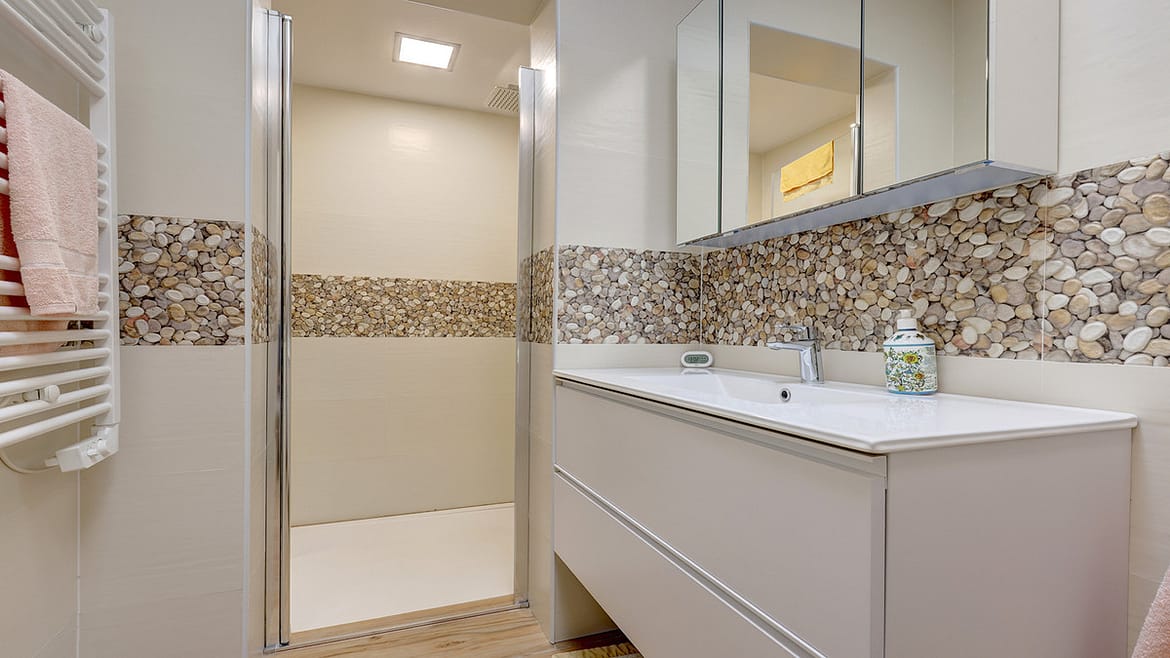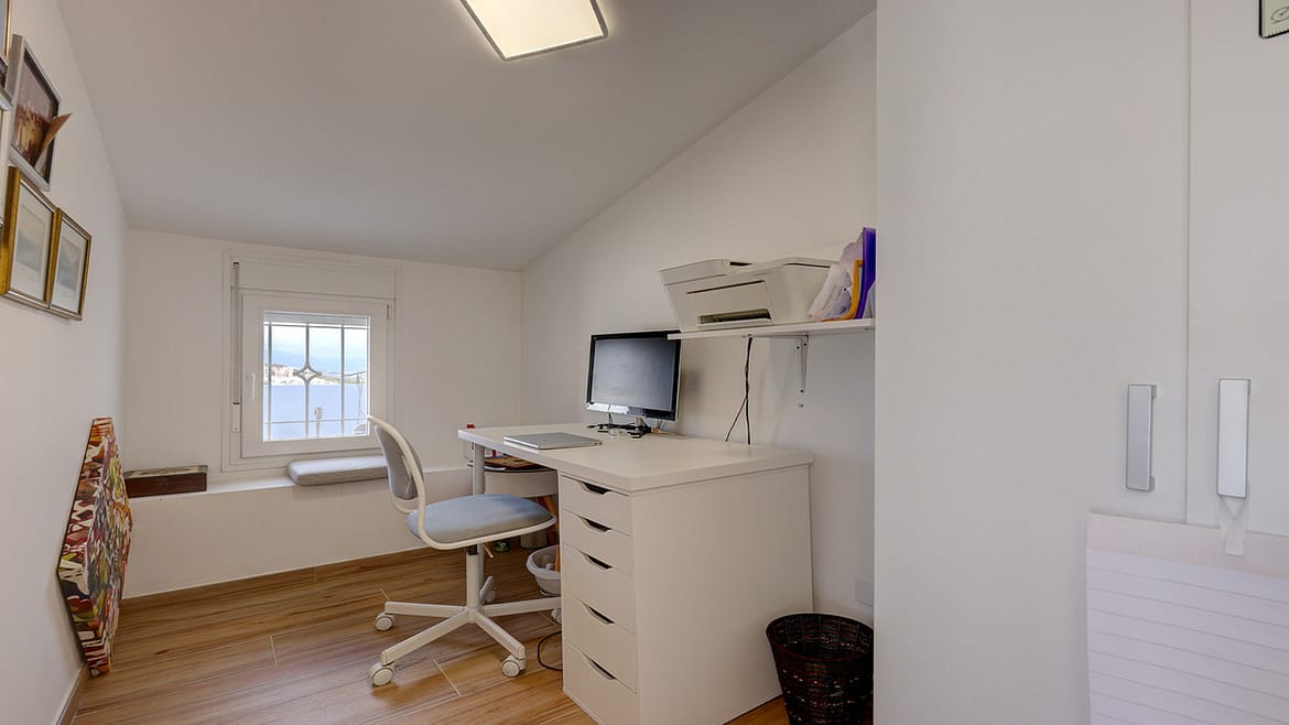 Upstairs, a staircase leads to a private solarium. One side is set up as a home office or studio, while the other opens onto a relaxing rooftop terrace with a Jacuzzi, outdoor shower, and the most incredible bird’s-eye views. It’s an idyllic spot to unwind and remind yourself why life here really is so special.