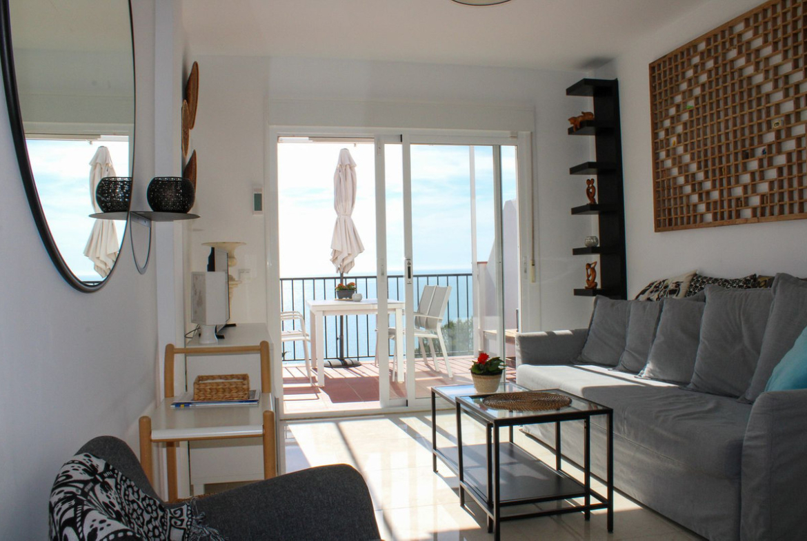 Exclusive semi-detached house with roof terrace and stunning views of the Mediterranean Sea, located in the well-kept urbanization Ladera del Mar 2 between Nerja and Torrox Costa. In addition to the two wonderful terraces of a total of 58.6 m2, you have two bedrooms, two bathrooms, living room and open-plan kitchen. The house is sold fully furnished and is tastefully decorated, just move in. Tourist license is available for rent, private parking is included in the price.