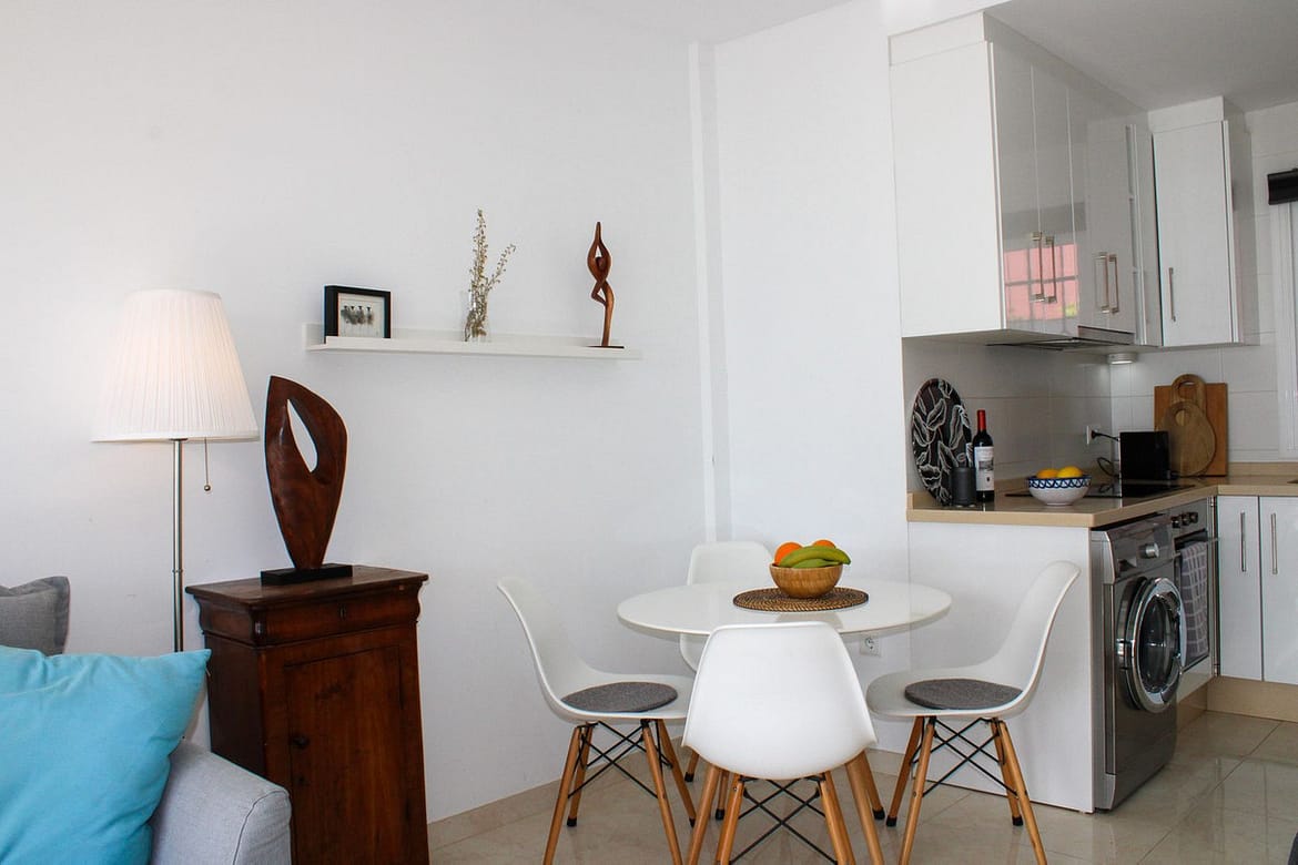 The house is privately located with no outside access, at the entrance there is space for flowers or a coffee table if you want. Once inside the house on the right, we have a fully equipped kitchen with open plan to the living room. From the living room you reach one of the wonderful terraces, here there is also an awning for shade during the hottest days.