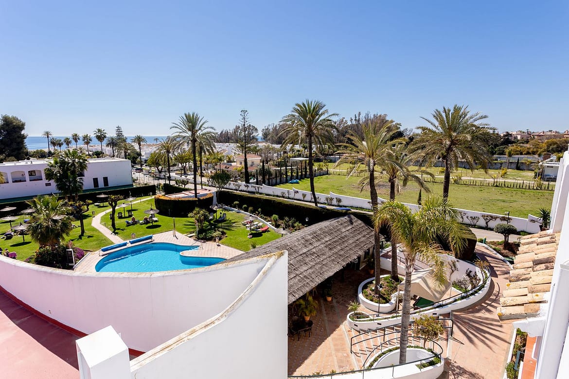 Penthouse located in a beachside 4 star resort with outdoor heated swimming pool, indoor pool and spa, beautiful gardens, gym and tennis court. The penthouse consists of two bedrooms with built-in wardrobes, two bathrooms, a fully equipped kitchen, a living/dining area with access to an east facing terrace. The apartment has a solarium, ideal to chill out in the sun. The compound has a couple of restaurants on site and is walking distance to the beach, a mini market and other amenities in the area.
