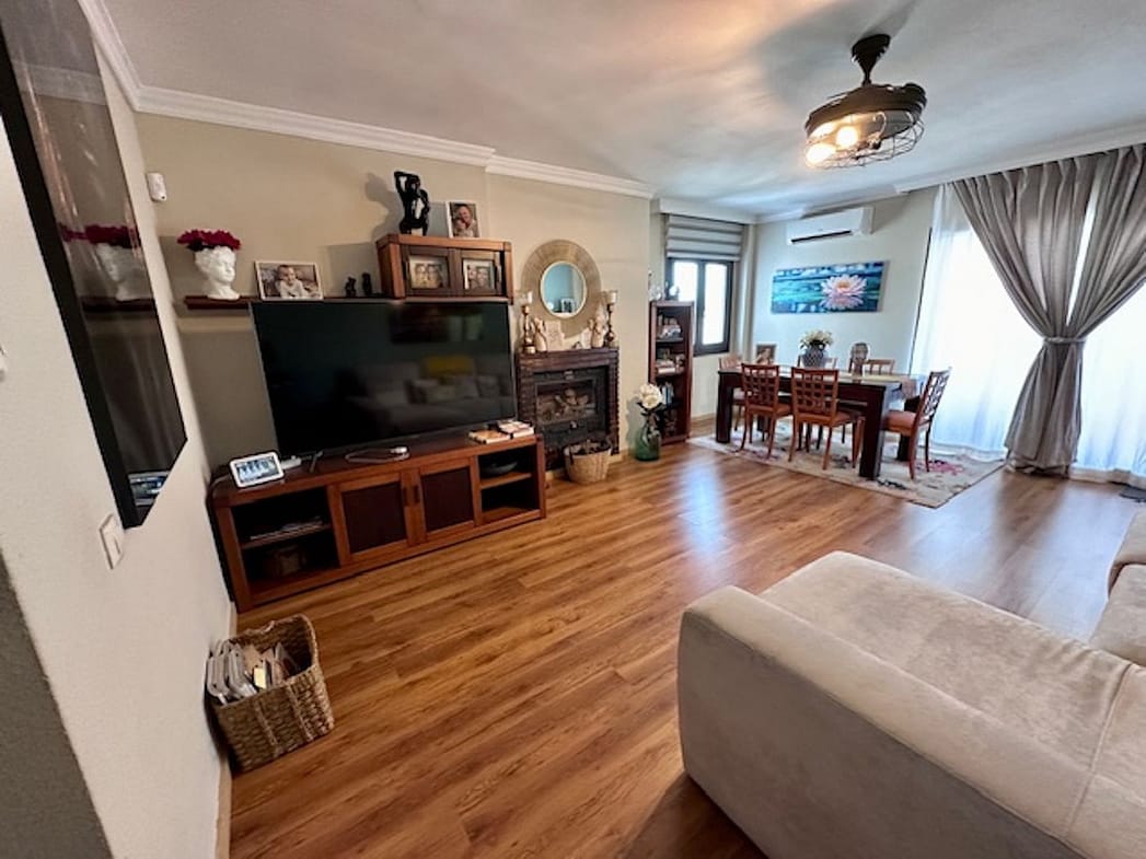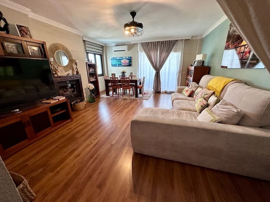 Entrance hall, very spacious living-dining room on the right, with a fireplace with a turbo fireplace, and access to a beautiful terrace with views of the development and urban areas.