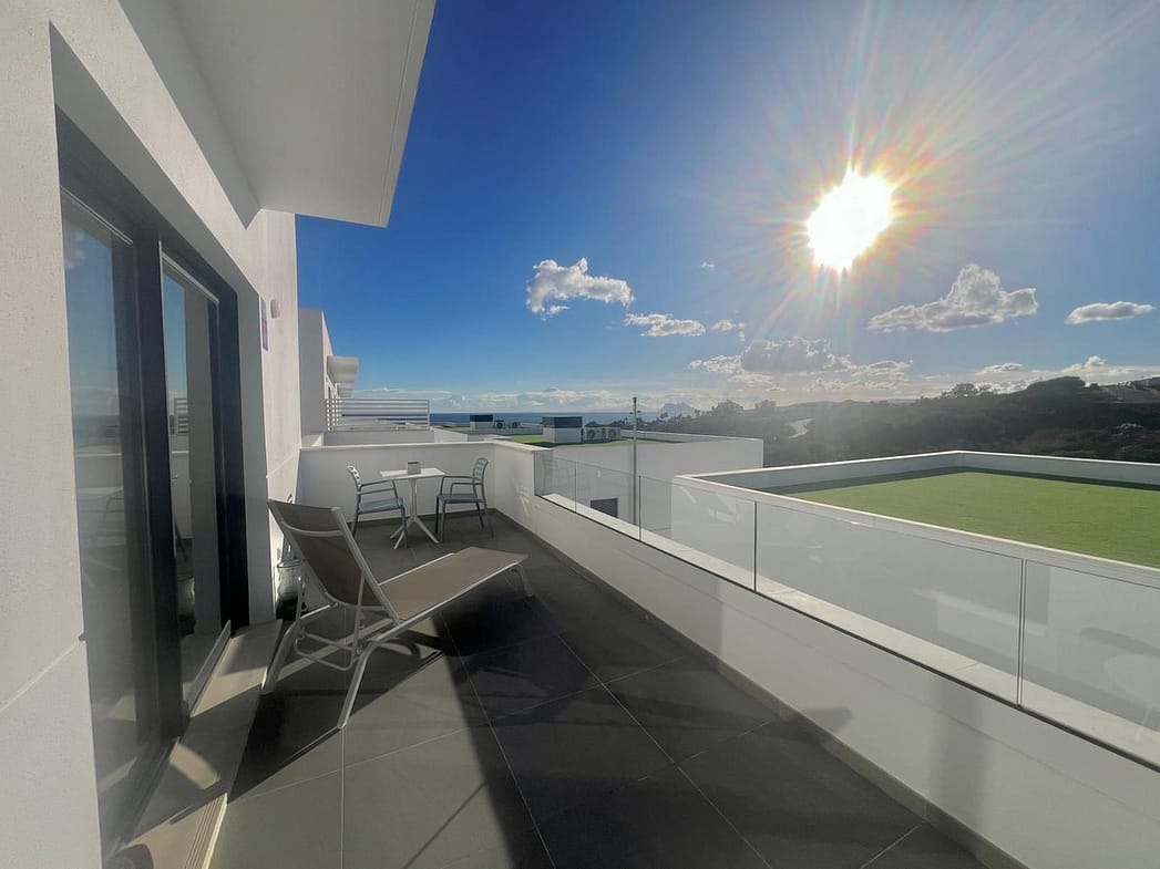 Magnificent apartment , located within the highly sought-after development of Bahía de las Rocas – Manilva. The property offers two bedrooms and two bathrooms, combining comfort, elegance, and functionality. From the moment you enter, a welcoming entrance hall leads to a spacious, light-filled living area featuring an open-plan kitchen, dining area, and a comfortable lounge. This space opens onto a large terrace, a true extension of the interior, offering spectacular views of the sea, Gibraltar, the coast of Morocco, and the surrounding hills. Thanks to its ideal south to south-west orientation, the apartment enjoys optimal sunlight throughout the day. The property can be accessed directly from the underground parking, with a private entrance leading straight into the apartment. A laundry room completes this property. The apartment is sold fully furnished. The project, completed in summer 2025, is a contemporary residential complex consisting of 46 apartments, designed to offer exceptional panoramic views of the Mediterranean, just a few meters from the beach. The complex stands out for its high-quality materials, generous living spaces, and exclusive amenities, including an infinity pool, gym, and spa. Ideally located close to golf courses and marinas, it is just 15 minutes from Gibraltar Airport and a short distance from Estepona, La Duquesa Marina, and the prestigious Sotogrande Marina. Puerto Banús and Marbella are less than 30 minutes away. An exceptional property, ideal as a primary or secondary residence or as a high-quality investment, set in a natural and exclusive environment, perfect for enjoying the Costa del Sol climate and the Mediterranean Sea. A must-see!