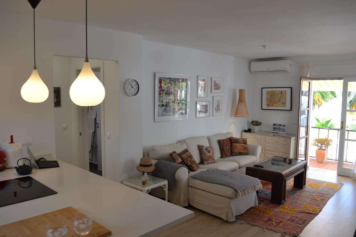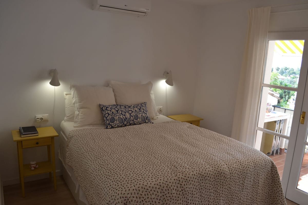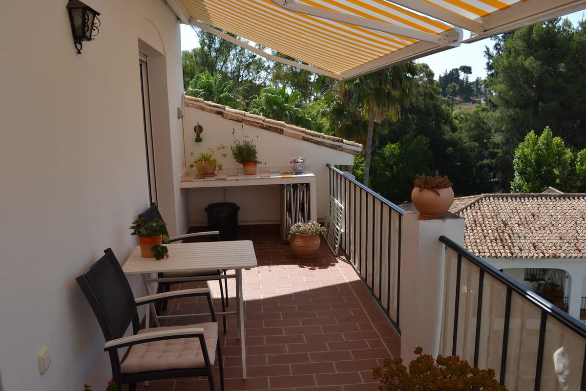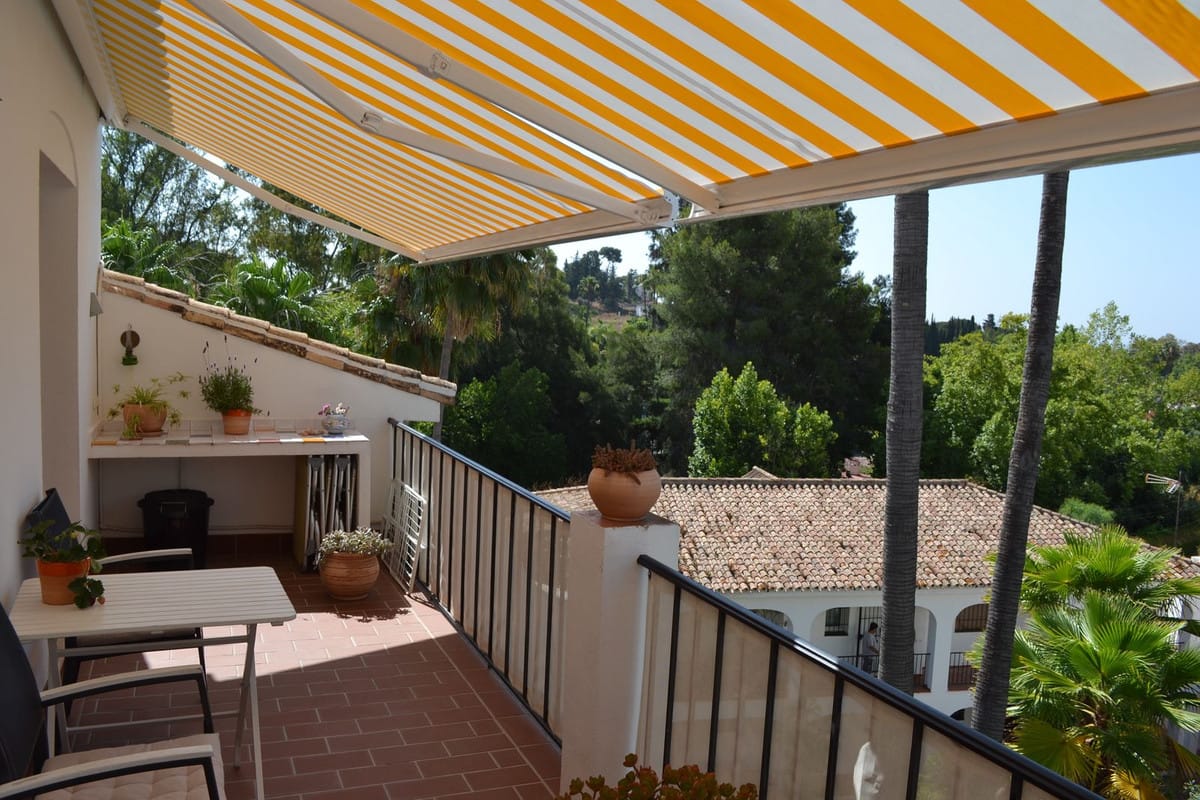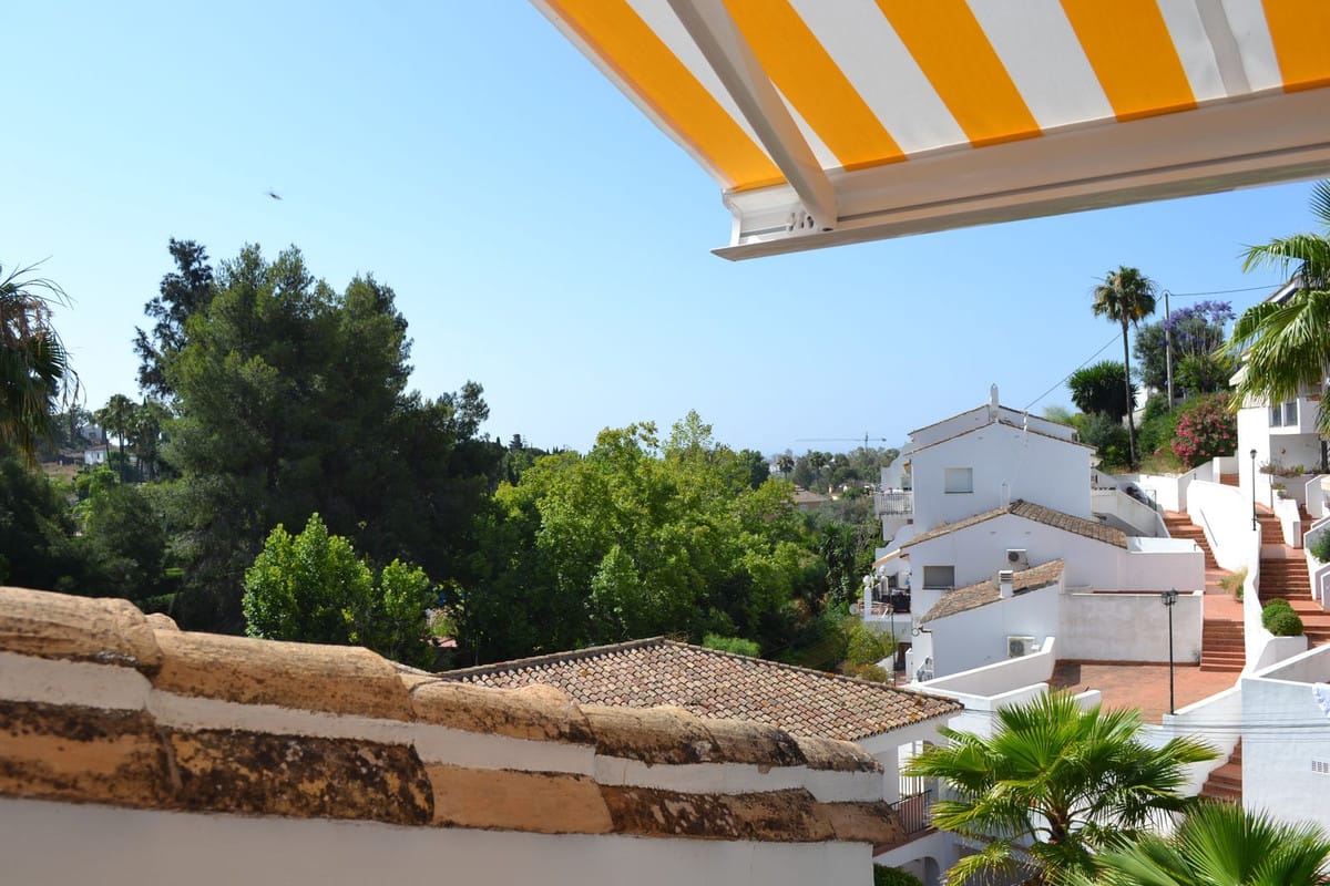 Beautiful 2 bedroom top floor apartment with large sunny terrace in the well-known Lew Hoad Village, located on the road towards Mijas in beautiful surroundings with views of the mountains and a glimpse of the sea. The area is next to the Lew Hoad tennis club, where there is both padel, tennis and a fitness center. Lew Hoad is probably the most beautiful tennis and padel facility on the coast, which also has a beautiful restaurant and swimming pool.