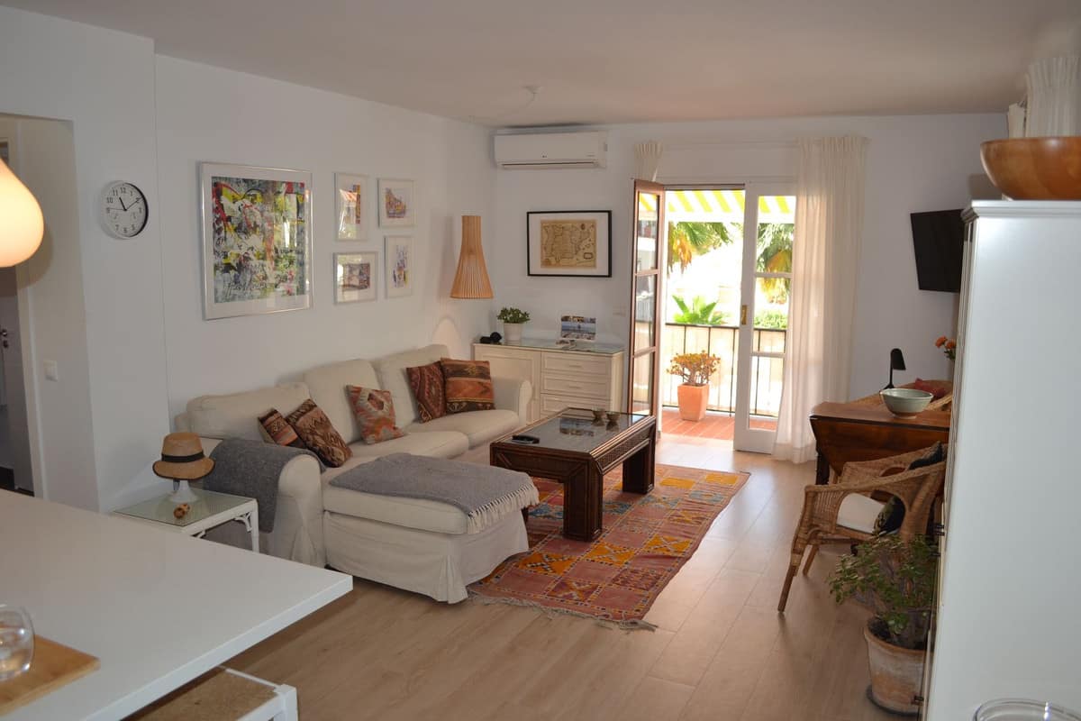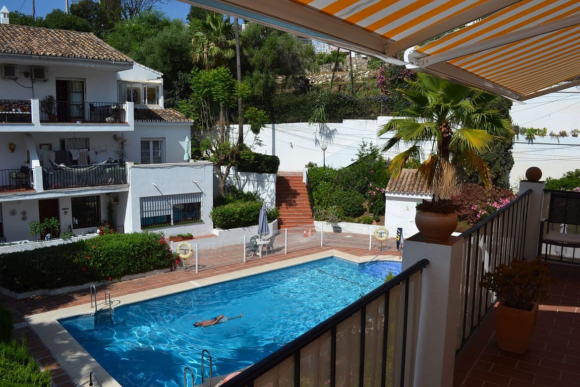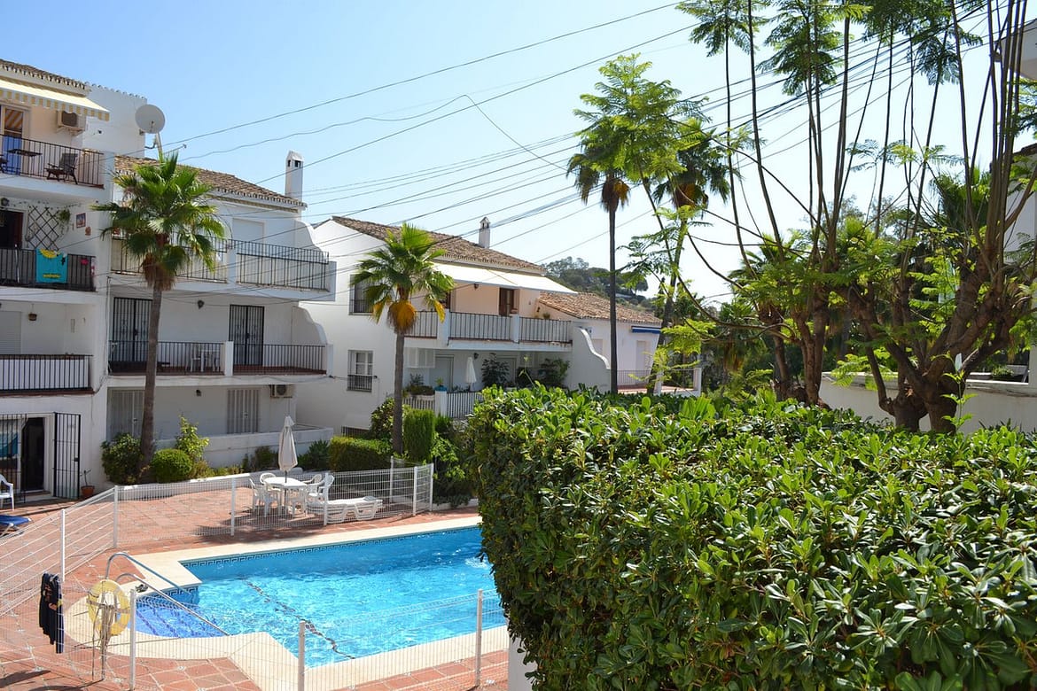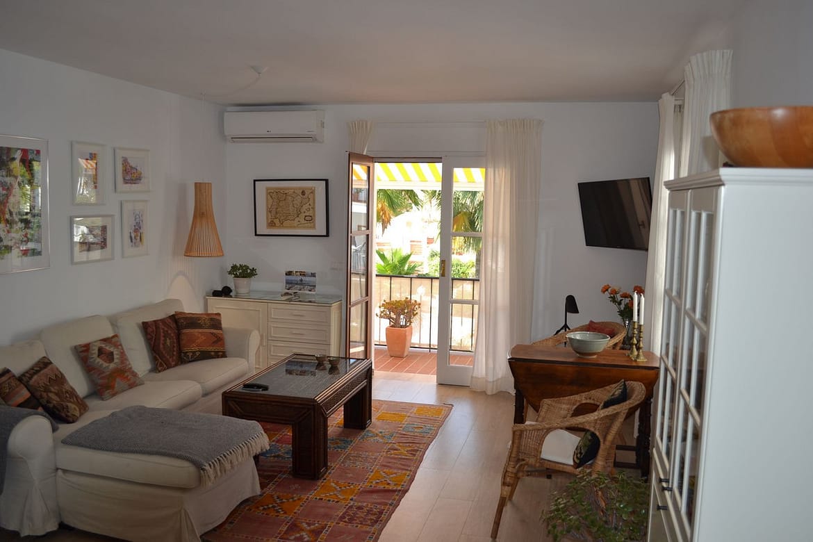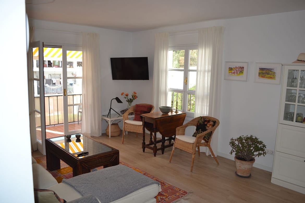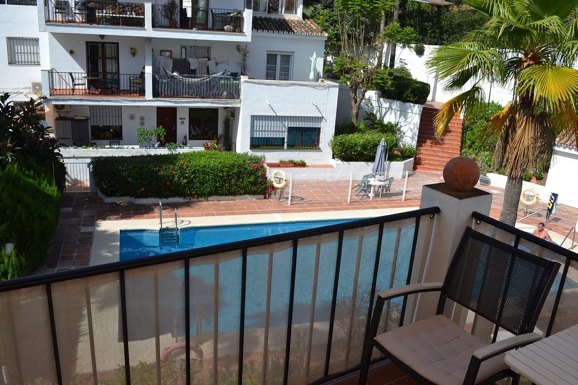 Beautiful 2 bedroom top floor apartment with large sunny terrace in the well-known Lew Hoad Village, located on the road towards Mijas in beautiful surroundings with views of the mountains and a glimpse of the sea. The area is next to the Lew Hoad tennis club, where there is both padel, tennis and a fitness center. Lew Hoad is probably the most beautiful tennis and padel facility on the coast, which also has a beautiful restaurant and swimming pool.