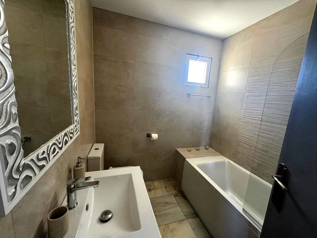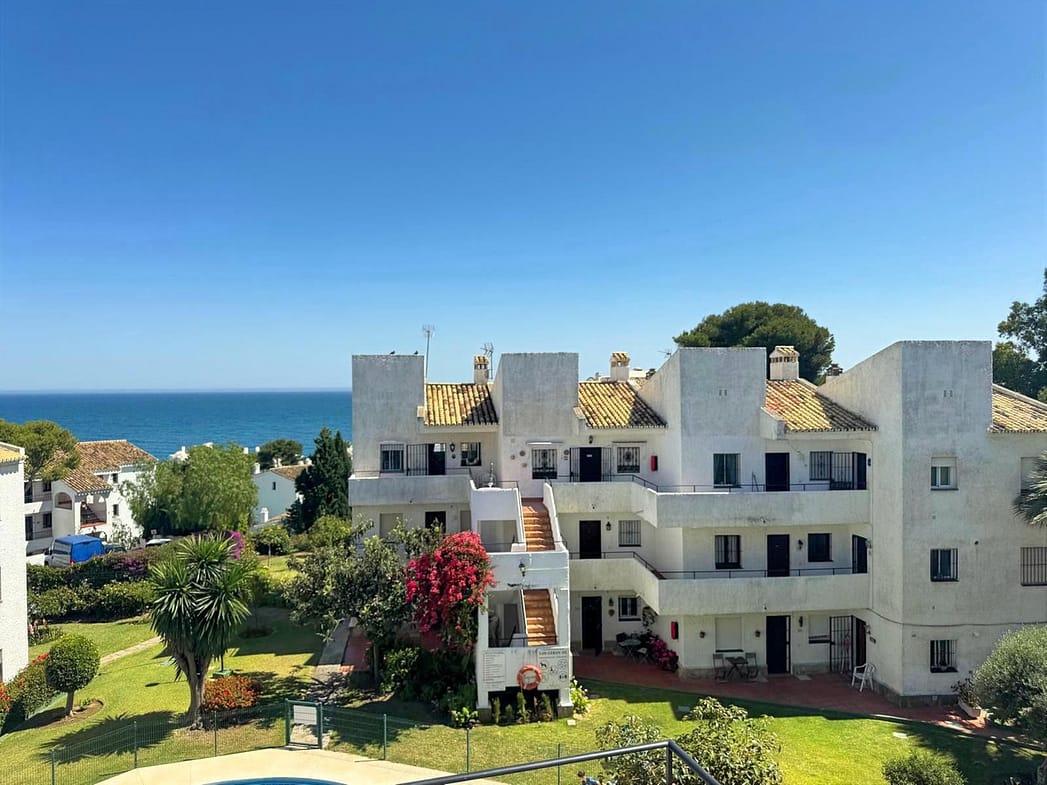 The property is presented in good condition and features marble flooring throughout, fitted wardrobes, fibre optic internet, and a fully fitted kitchen. From the living area, enjoy pleasant views over the communal gardens and out towards the sea. The beautiful communal pool area provides a tranquil setting to relax and unwind.