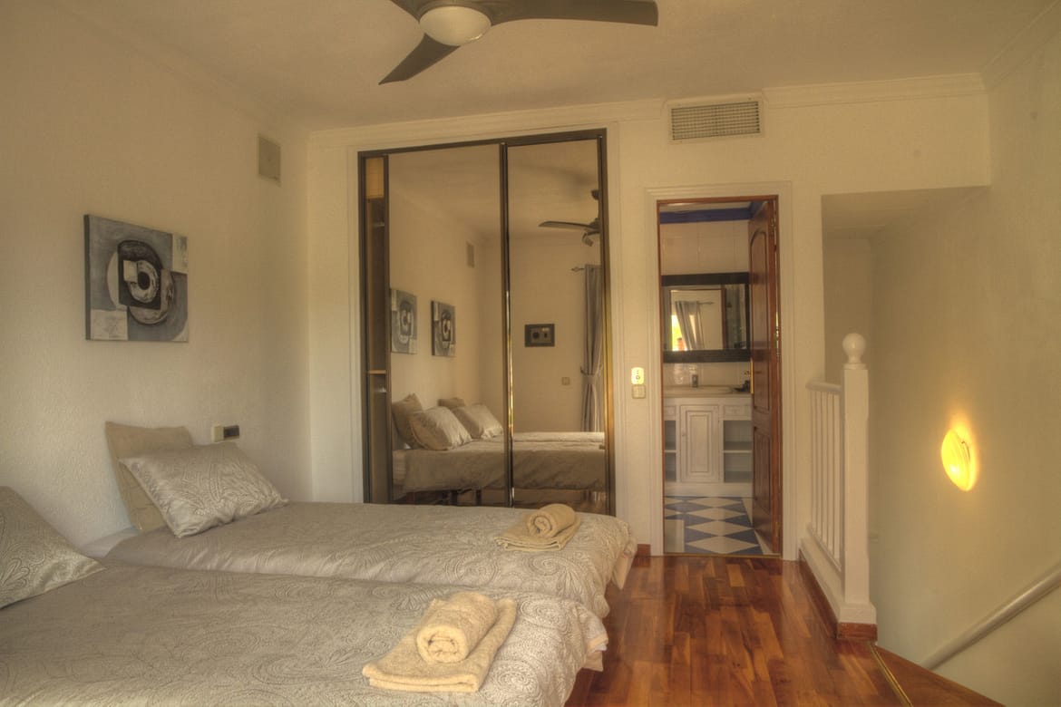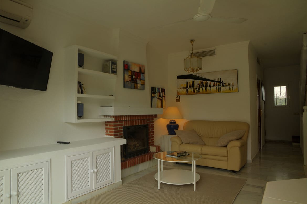 Beautiful 2 bedroom Townhouse in Aloha, Marbella, in the heart of Nueva Andalucia's 'Golf Valley' with views towards Aloha Golf and located only3 minutes drive from the buzz of Puerto Banús and Marbella Town. This cozy home has a private garden on the front line to one of the best championship golf courses in Marbella : Aloha Golf Club (Aloha Golf Club is a golf club, located 3 kilometres inland from Puerto Banús and 8 kilometres west of Marbella, Andalusia, Spain. It hosted the Open de Andalucia on the European Tour in 2007, 2008 and 2012.) From this cozy house you can walk to all the amenities (banks, supermarkets, restaurants and shops…) You can also practice every aspect of your game on the …. on the other side of the street and only 2 minutes wallk to Los Naranjos Golf.