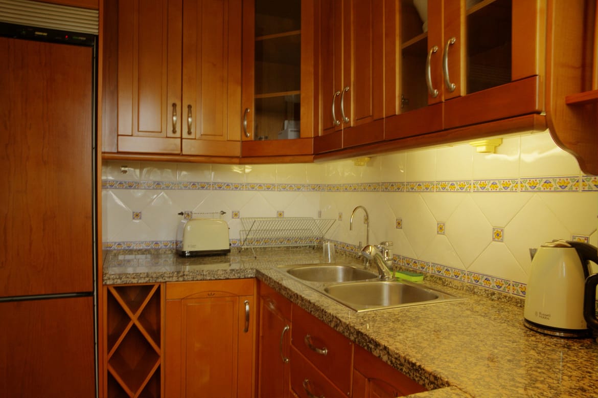Equiped kitchen iwith a washing machine, iron, dishwasher, microwave, kettle, fridge freezer…– everything you need for a comfortable self-catering holiday, be it long or short term!
