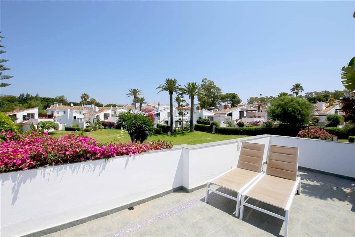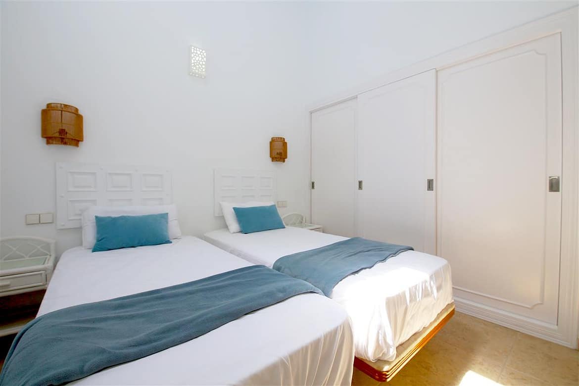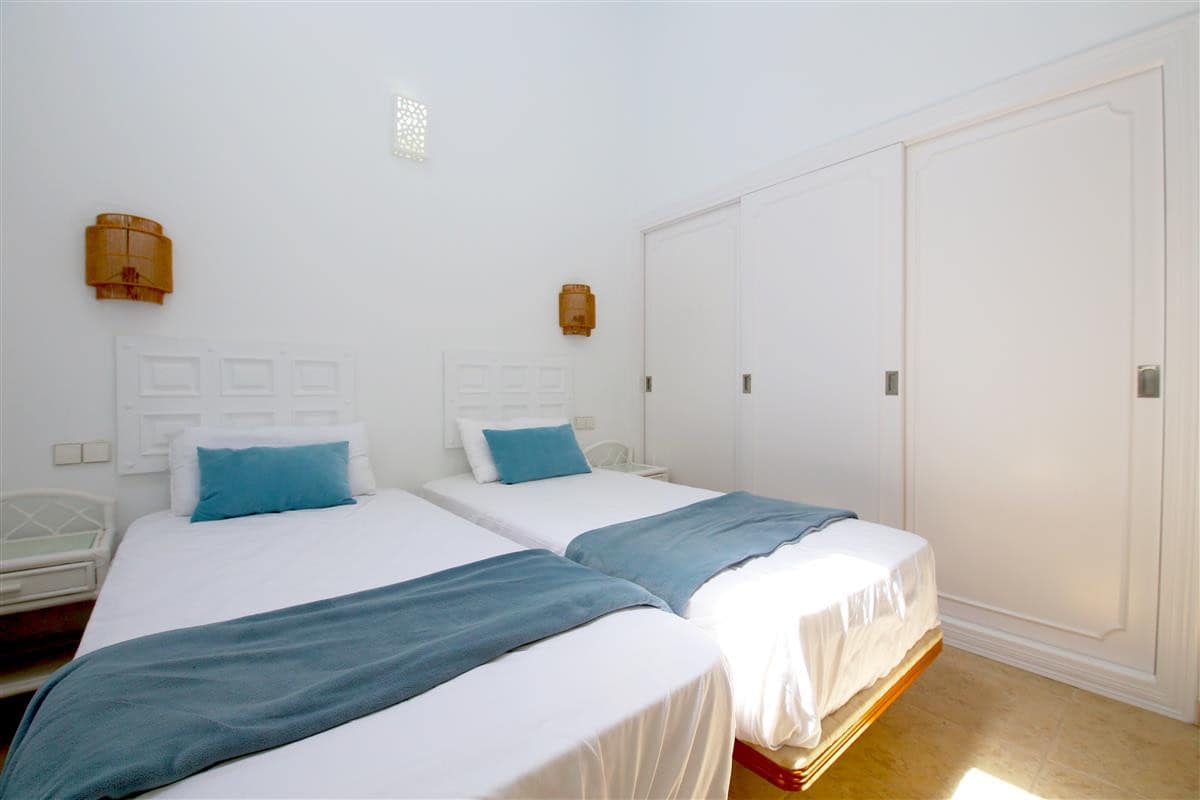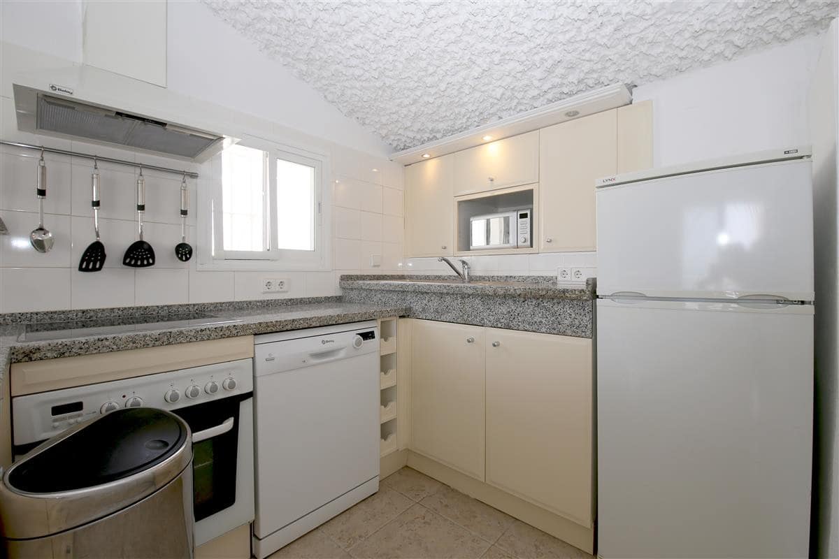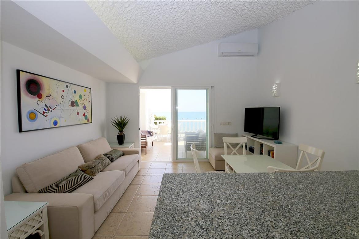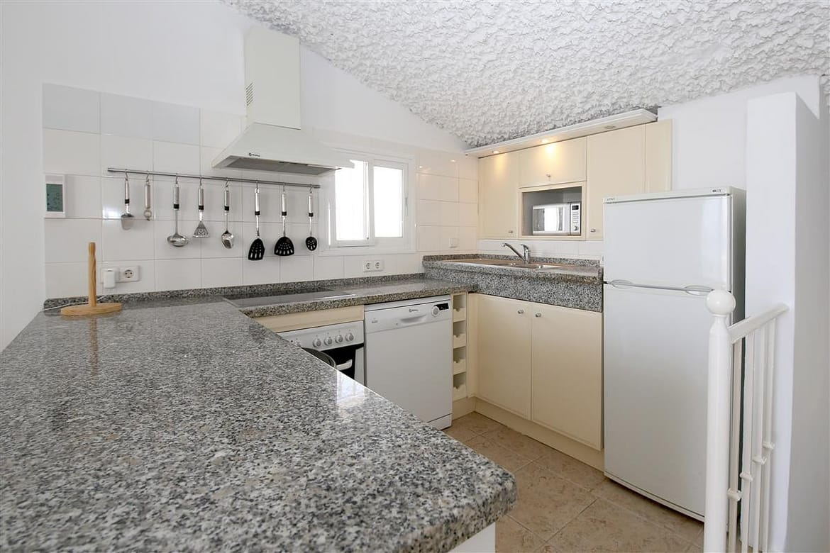 Beautiful sea front terraced townhouse located in the popular Villas Andaluzas complex, on the eastern edge of Estepona, with access directly to the beach from the private garden and community pool. This charming property has two bedrooms and two bathrooms, providing comfortable accommodation for four people. The master bedroom is equipped with a king size bed (160x200cm), an en-suite bathroom with a shower, toilet, hand basin and bidet; plus plenty of storage space in its built-in wardrobes. The bedroom has direct access to a private terrace overlooking the garden and offering direct sea views. The second bedroom is equipped with two single beds (90x200cm), another en-suite bathroom with a shower, toilet, hand basin and spacious built-in wardrobes. The modern living room offers stunning sea views and has direct access to a second large terrace with an outdoor dining area for six people and a comfortable seating area with magnificent views. The living-dining room has a comfortable sofa and a flat-screen TV offering a wide selection of national and international channels including Sky. There is a dining area next to the open-plan kitchen with seating for four. The open-plan kitchen is very well-equipped with everything you could need for your holiday. A private sunny terrace is also available with sun loungers for sunbathers. The property also features a private garden with additional sun loungers and direct views of the sea and beach plus a gas barbecue for alfresco dining. The property is air-conditioned throughout and high-speed Wifi is also available for guests. Overall, this is a fantastic opportunity for your vacation on the Costa del Sol.