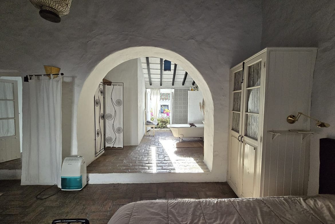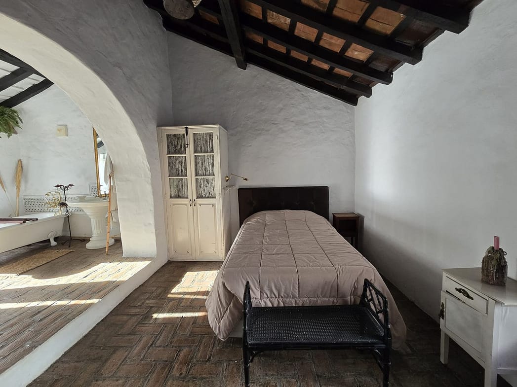 The upper floor opens on a very spacious and luminous bedroom, with direct access to the terrace of 30m2, with fireplace and open bathroom en suite with shower and bathtub, a second bedroom has its complete bathroom en suite with built-in wardrobe.