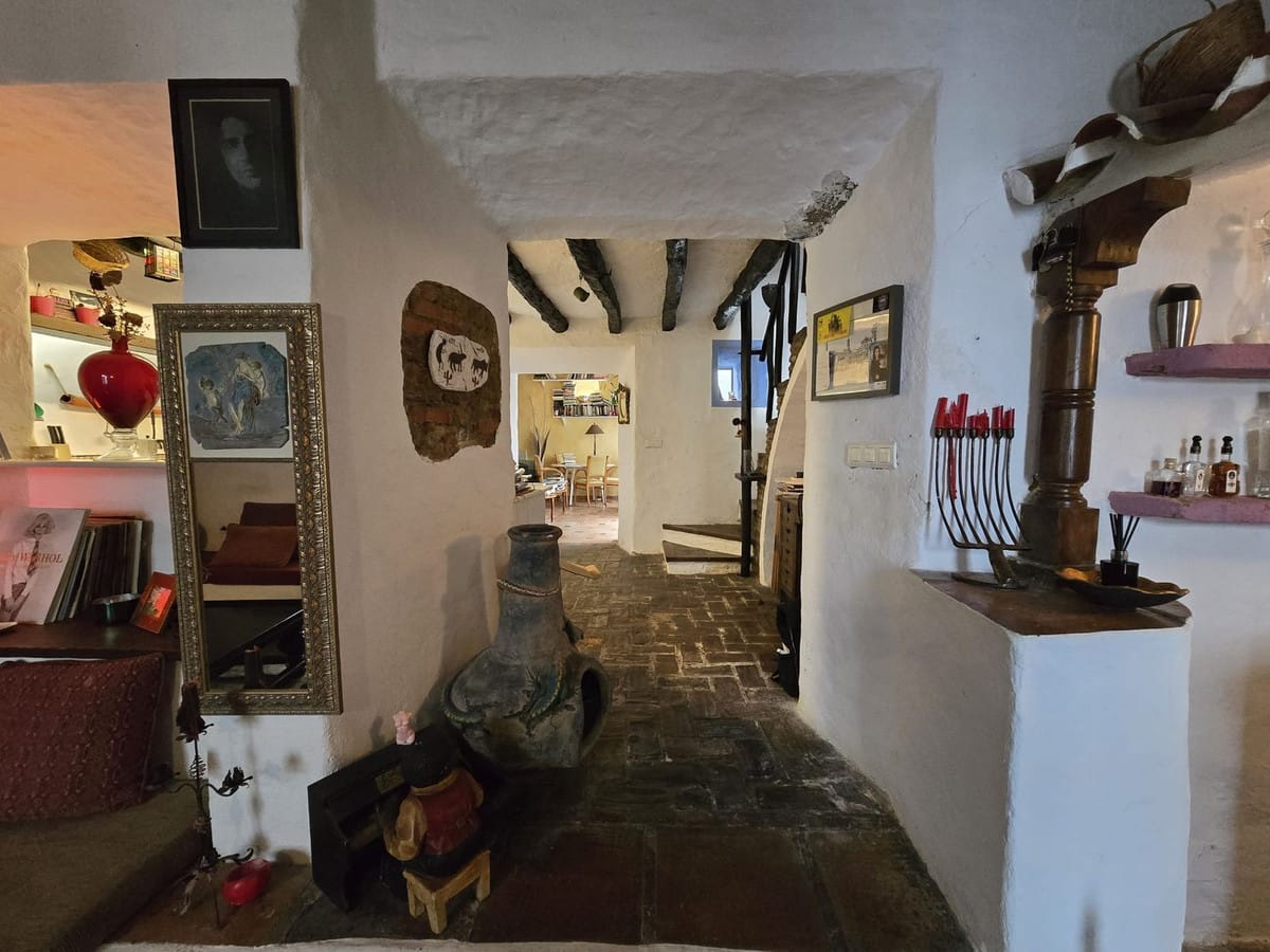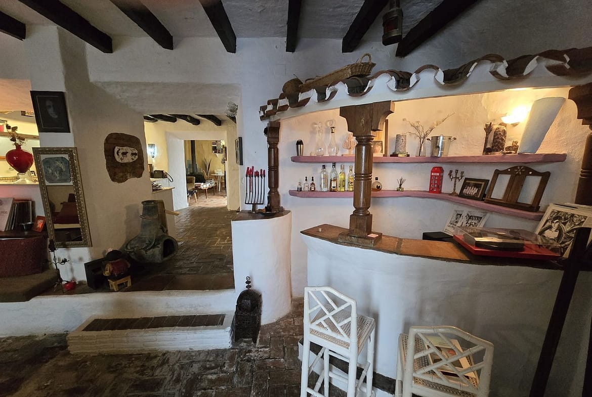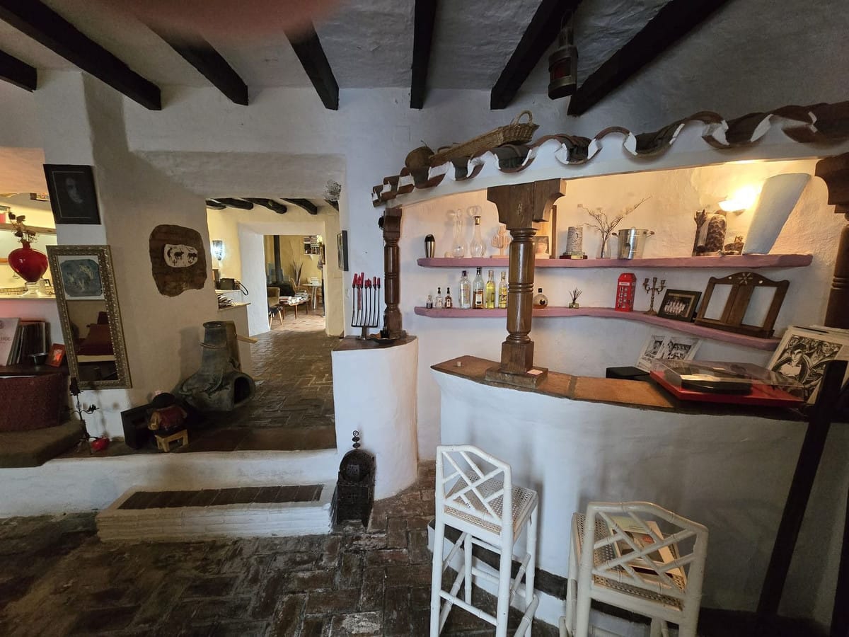 At the entrance, we find a chill out lounge with a bar, a very spacious equipped kitchen, and a lounge with a fireplace, and a patio which gives access to the upper terrace.