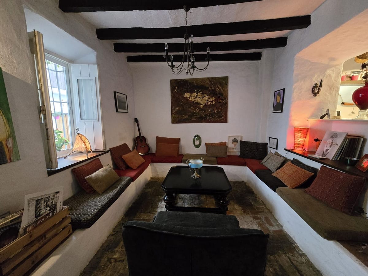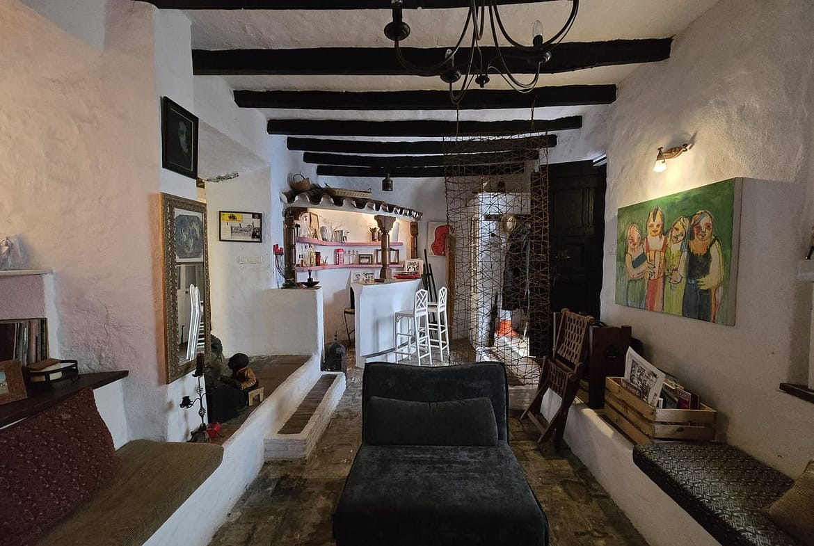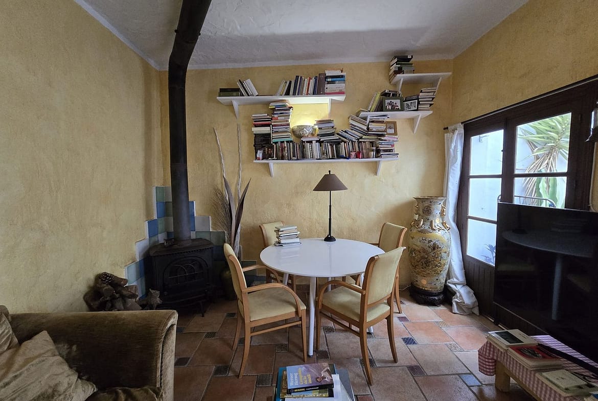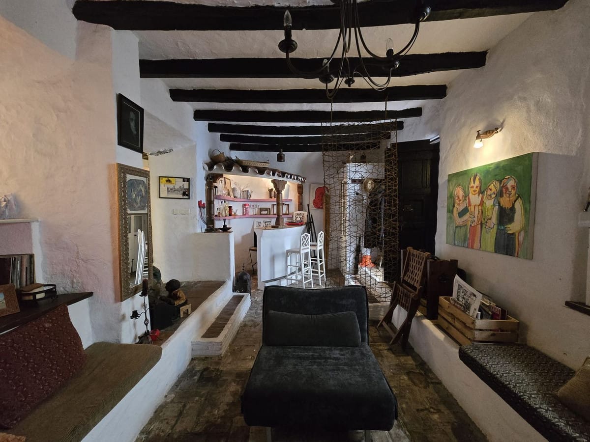 At the entrance, we find a chill out lounge with a bar, a very spacious equipped kitchen, and a lounge with a fireplace, and a patio which gives access to the upper terrace.