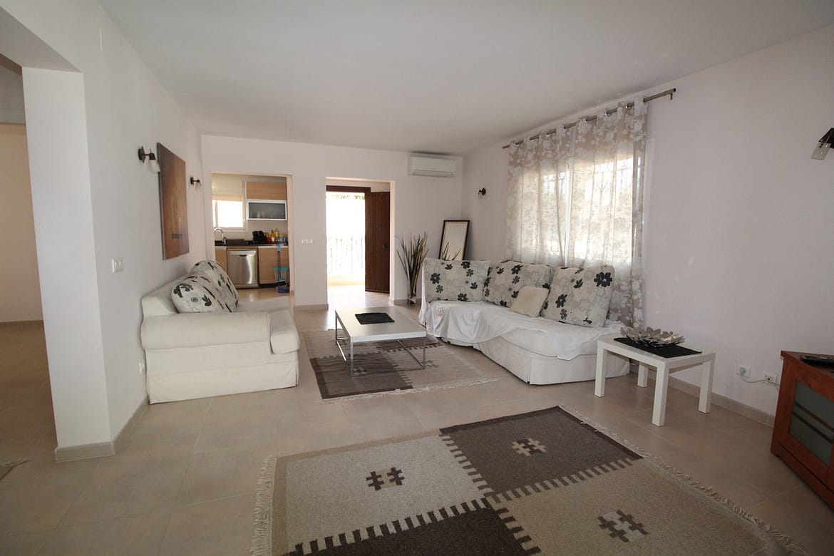 At the entrance of the villa, we find the classic open kitchen with small dinning area with access to the garden, we have very bright livinf room with large windows overlooking the garden and direct access to the pool and BBQ area.