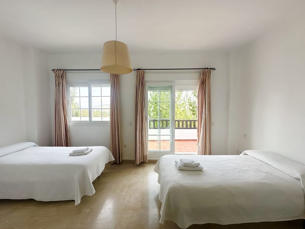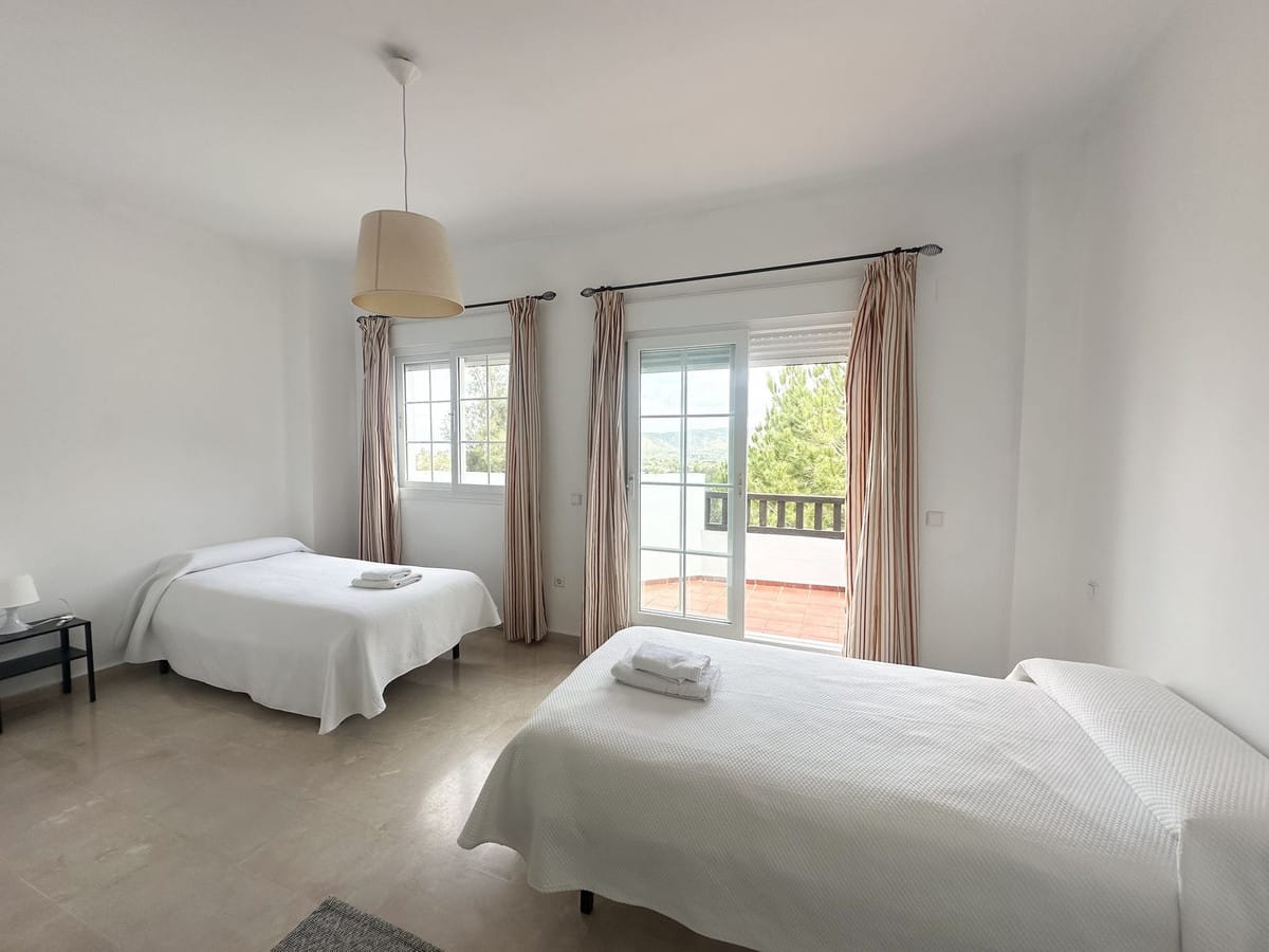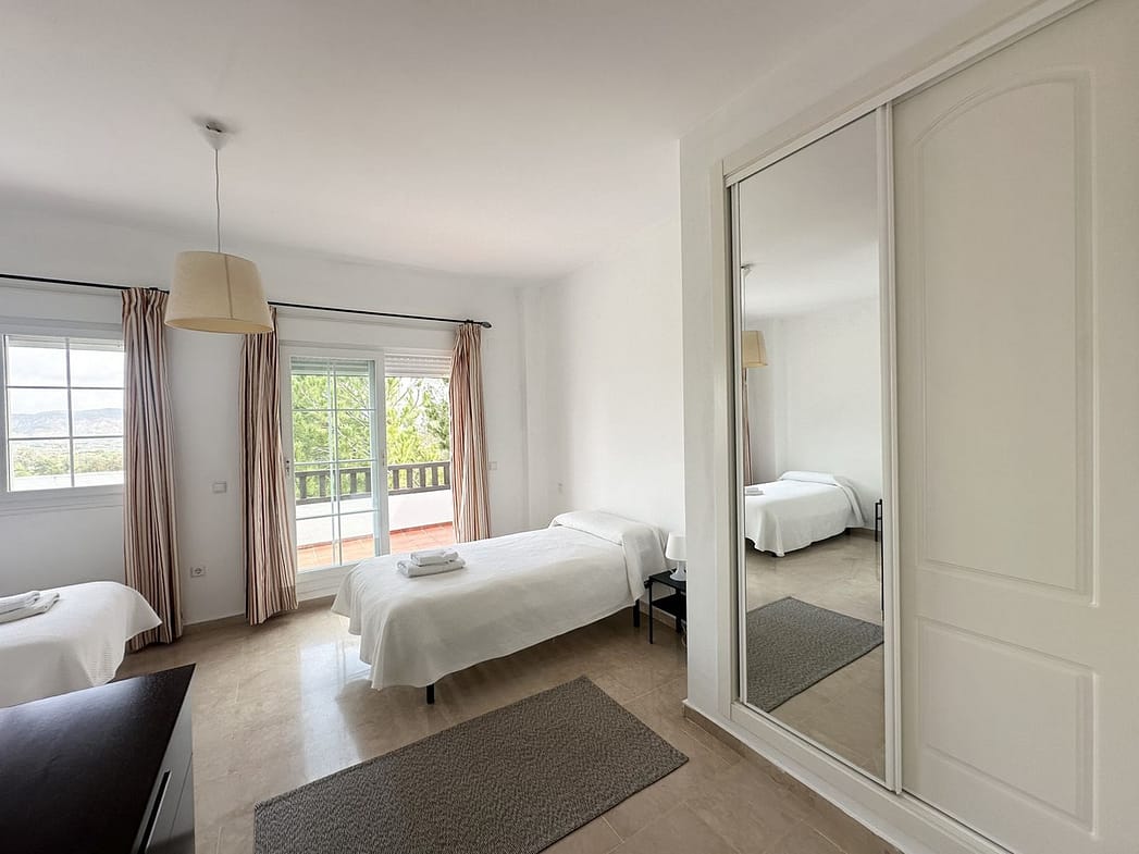 On the first floor you have two spacious en-suite bedrooms. The master has a big bathroom with both bath tub and shower and the bathroom leads on to a nice terrace overlooking the golf.