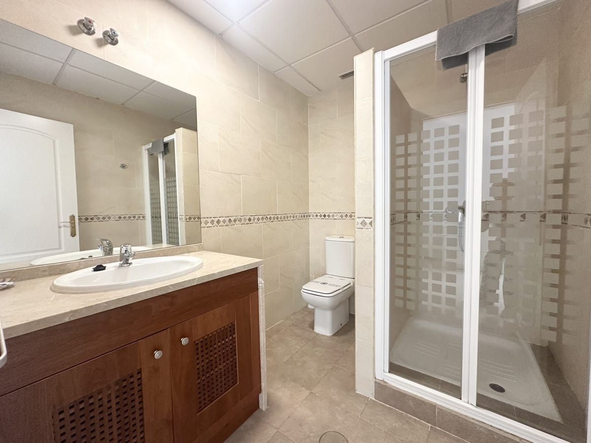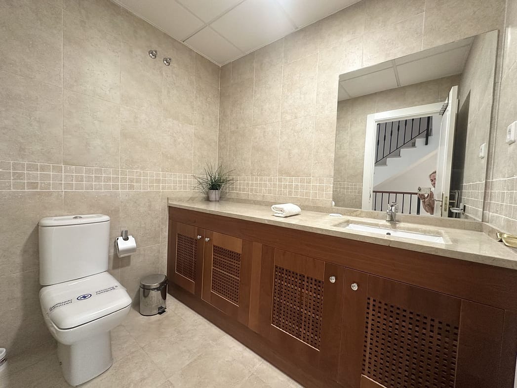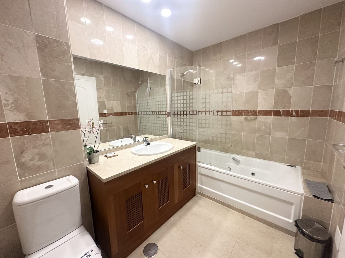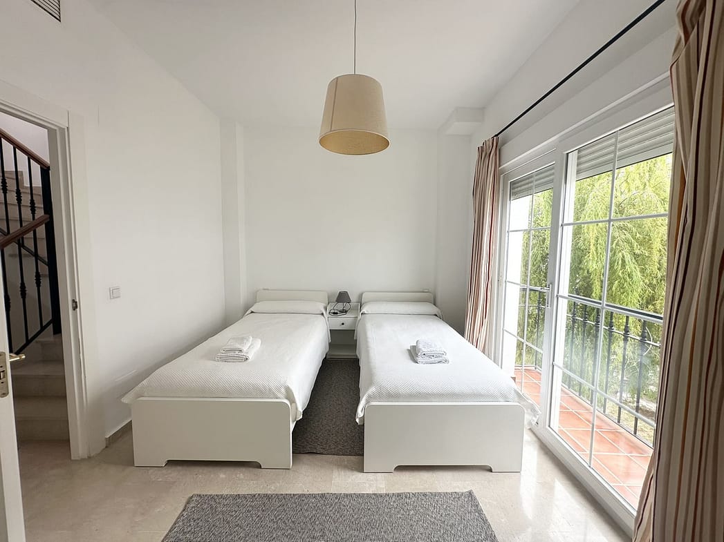 On the first floor you have two spacious en-suite bedrooms. The master has a big bathroom with both bath tub and shower and the bathroom leads on to a nice terrace overlooking the golf.