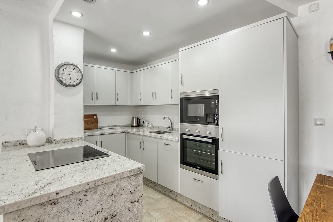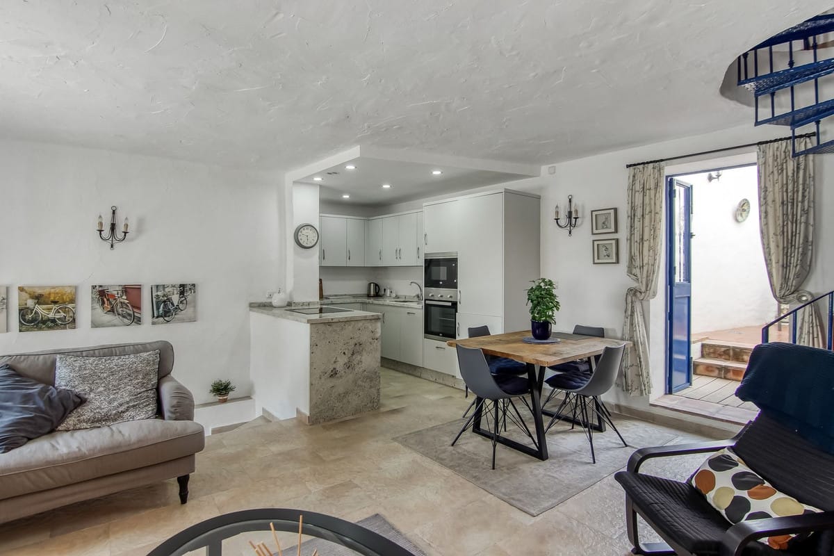 Lovely renovated, rustic style townhouse. 2 beds (1 en-suite), 2 baths, patio and roof terrace.