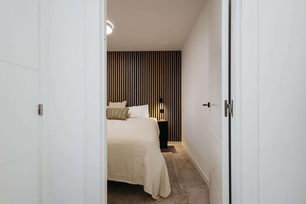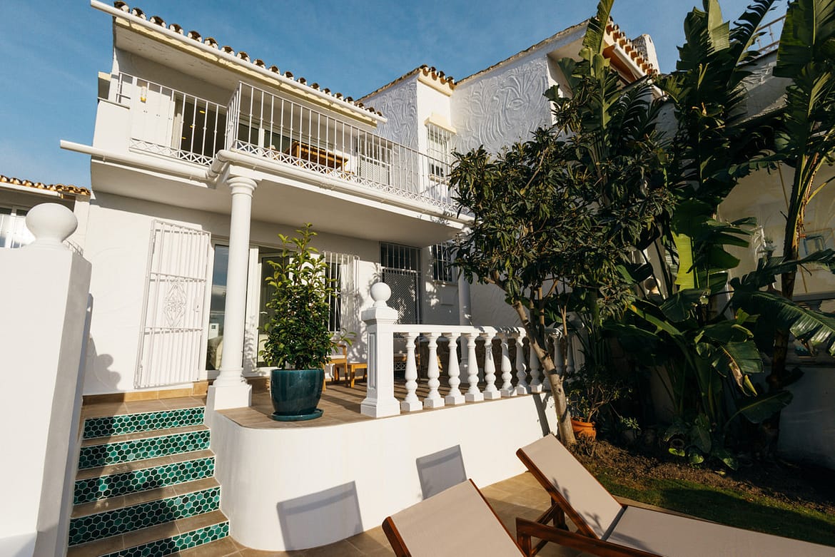 The master bedroom opens directly onto a private outdoor chill-out area with sun loungers, lush greenery, and a tranquil ambiance—your own secluded retreat to fully embrace the Costa del Sol lifestyle.