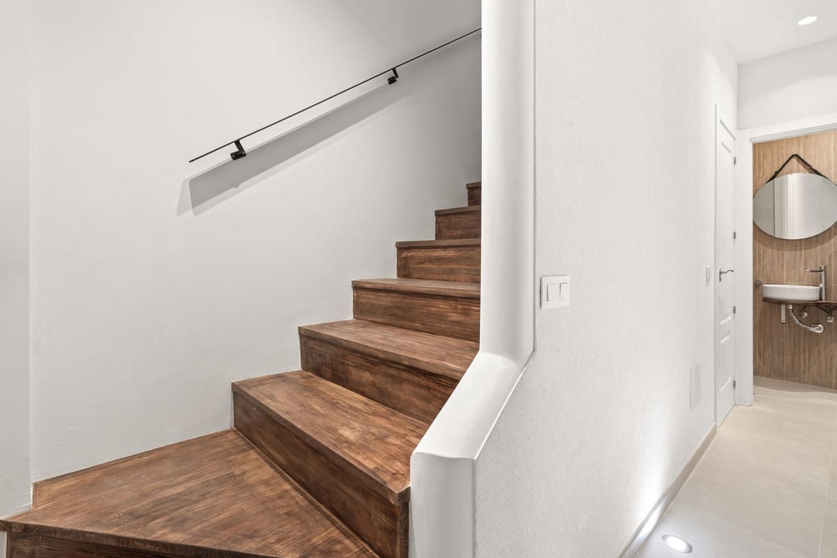 Fully renovated townhouse combining traditional structure with contemporary interiors, offering generous living spaces, a private terrace with outdoor shower, and carefully selected finishes throughout.
