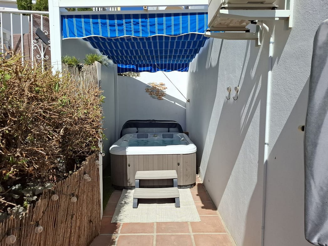 Big and very private terrace south east facing with jacuzzi on the side of the house and a patio on the front side