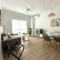 Inside, the home showcases a chic North European design, highlighted by an open-plan kitchen that seamlessly connects to the spacious living and dining area. The two well-appointed bedrooms are bright and airy, with quality finishes and ample storage. Additional features include a private entrance, a cozy porch perfect for alfresco dining, and a dedicated service area for added functionality.
