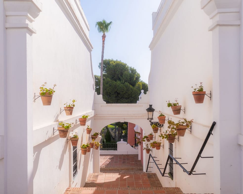 Aloha Pueblo is a unique development inspired by the charm of a classic Andalusian village. Built in the late 1980s, the community features cobbled streets, whitewashed facades, flower-filled walkways, and tranquil squares. It combines timeless aesthetics with modern comforts, including a communal swimming pool, landscaped gardens, and 24-hour security with surveillance and on-site guards.